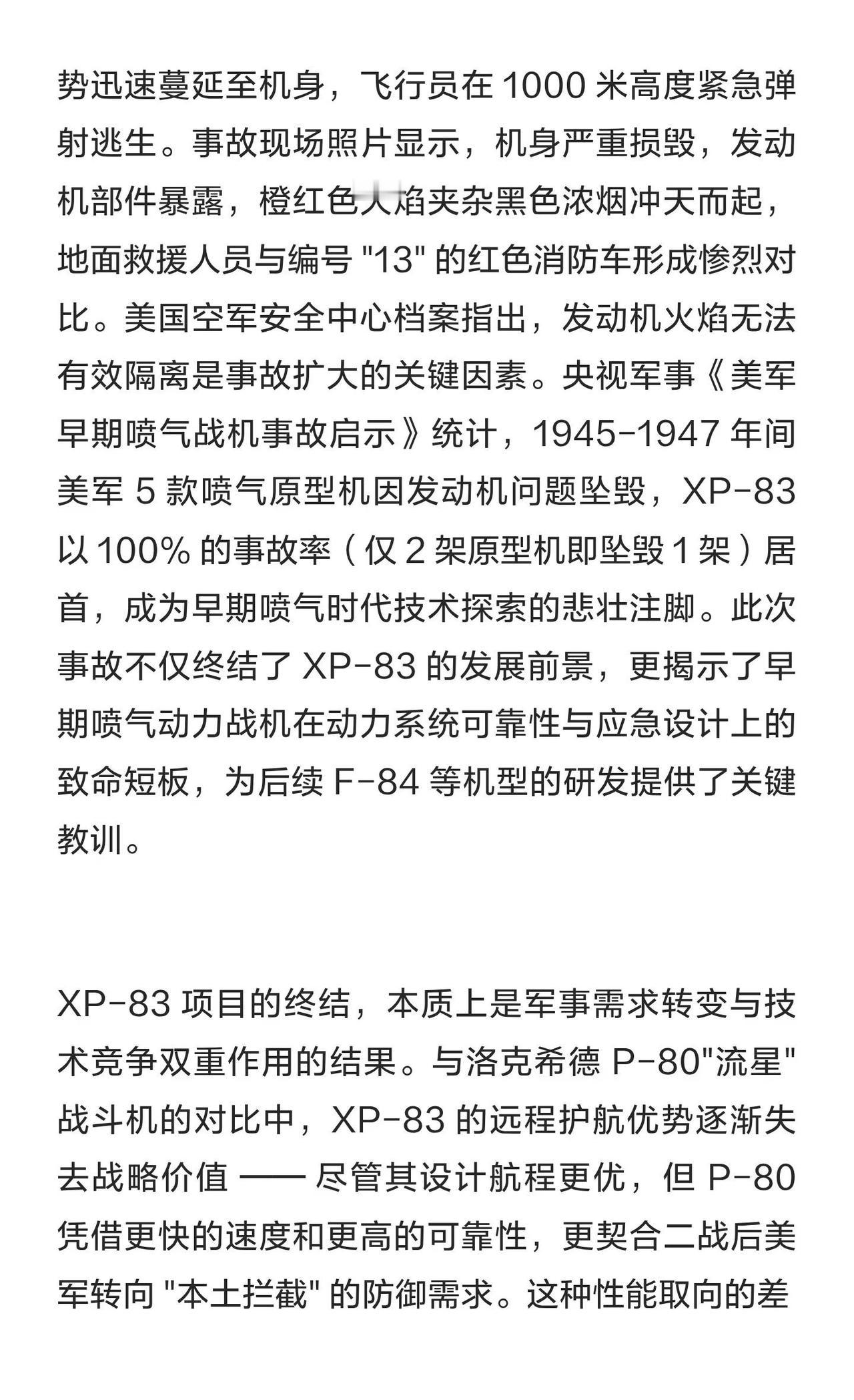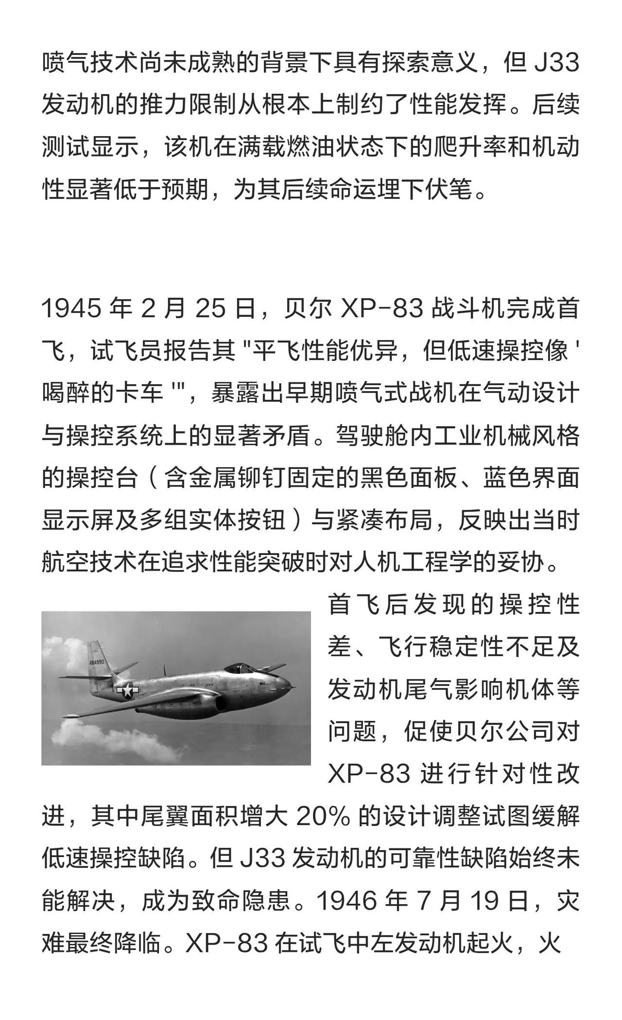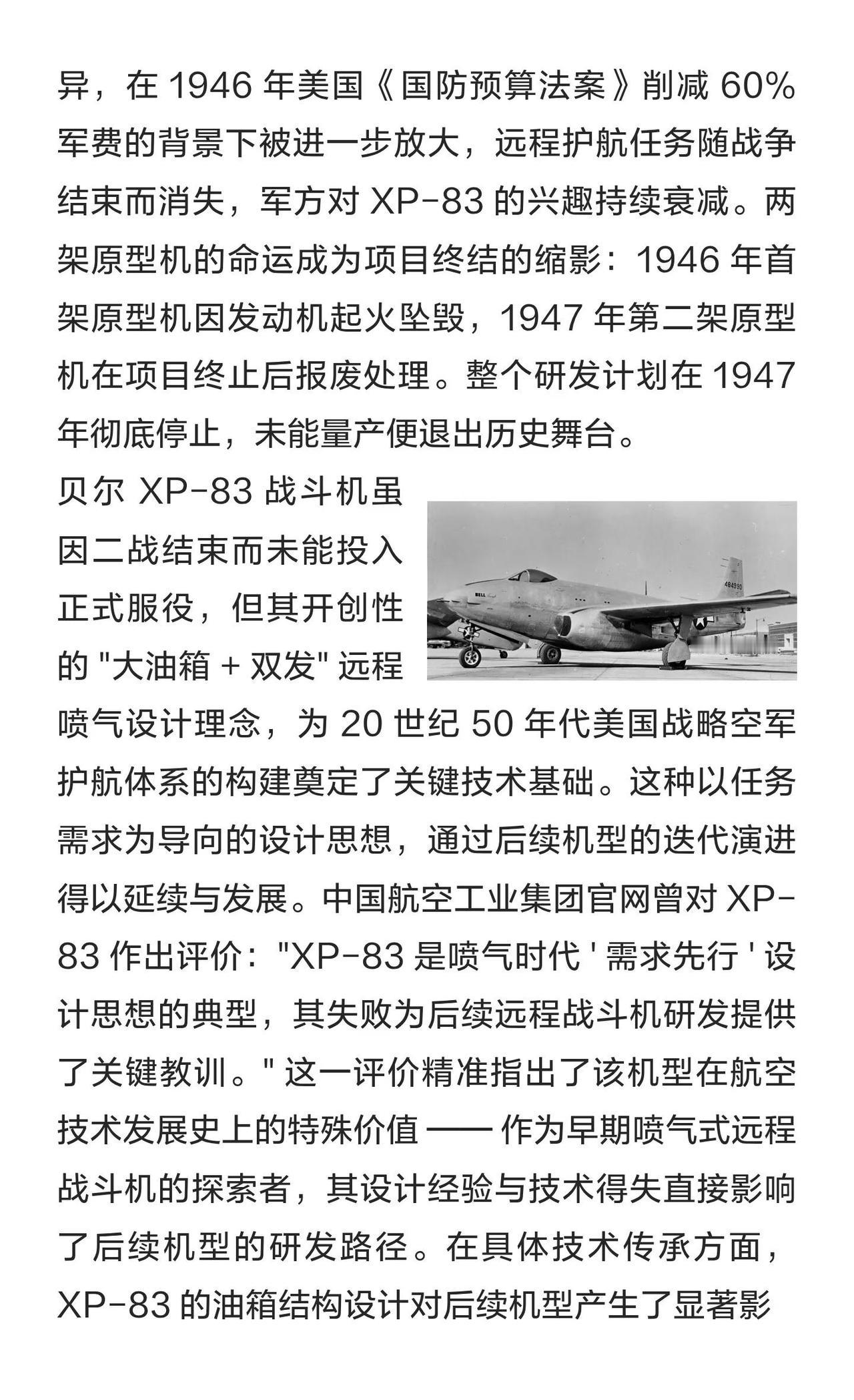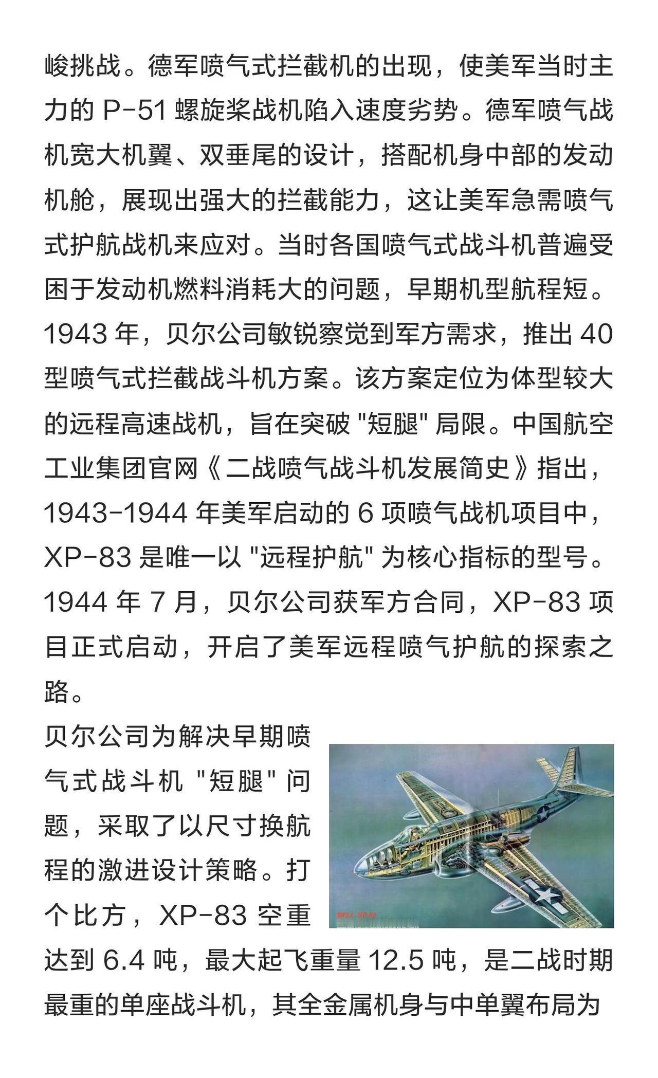 贝尔 XP-83 战斗机深度分析:二战末的远程 贝尔 XP-83 是二战末期美军研发的远程喷气战斗机,因设计缺陷和发动机问题仅试飞24个月便终结,成为最短命的喷气先锋。其激进设计为后续机型研发提供了重要经验。航模黄老师 一起看飞机 航空航天 战斗机 军事 大国重器彰显大国力量 武器装备
