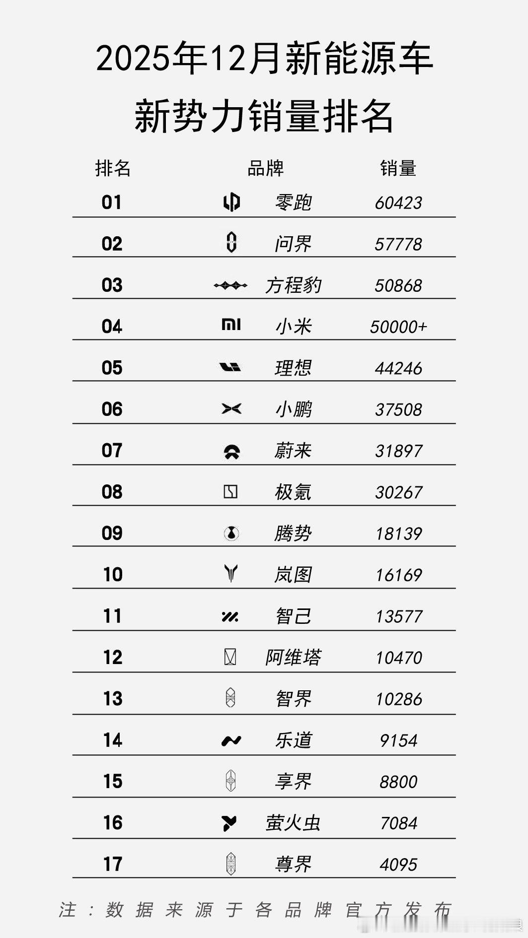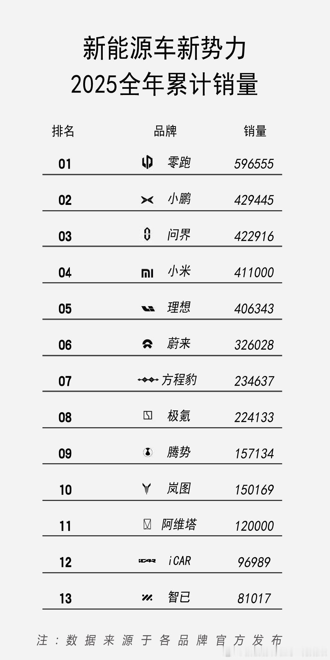 截止2026年1月1日的官方发布销量数据,曾经的头部造车新势力,是不是到了需要重