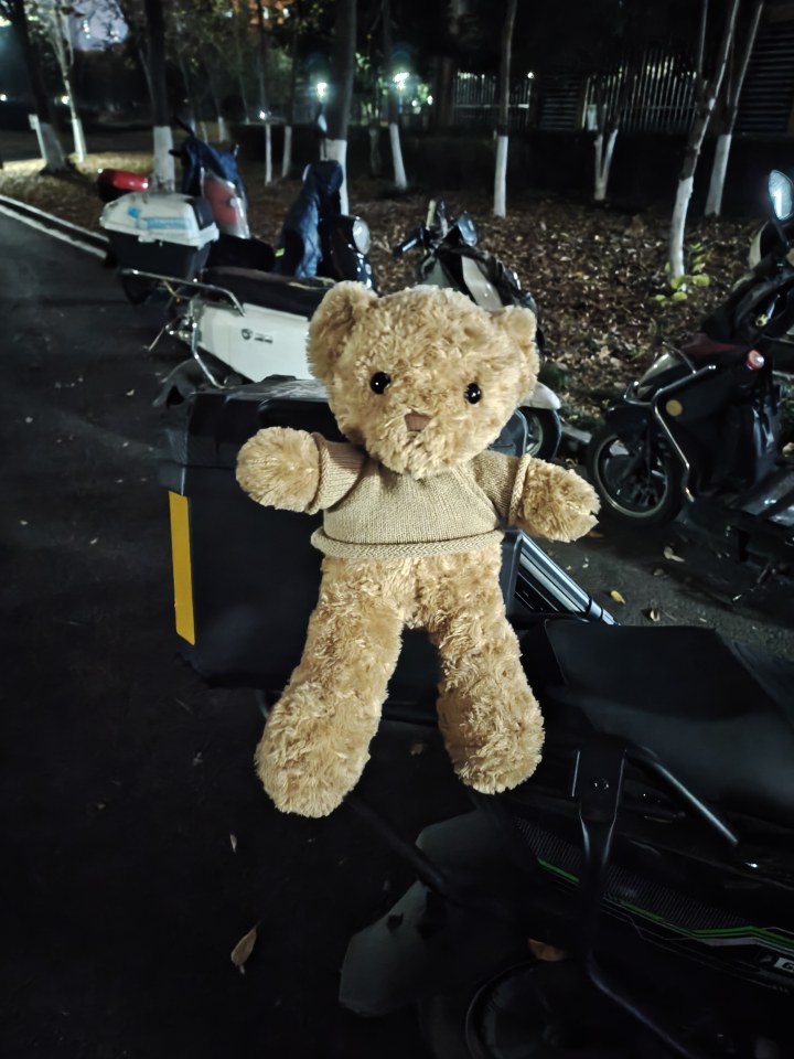 橙友@单纯的向日葵:昨晚上散步偶遇一外卖小哥的电动车,后备箱装饰了好几个可爱的动物娃娃,这时我家小暖男轻言细语的对我说:妈妈,它们在车上会不会冷。