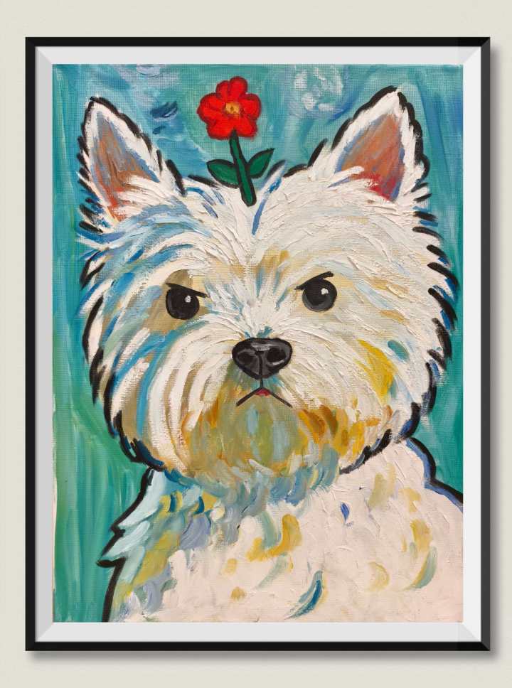 橙友@大红红:上周画了一幅西高地,也太可爱了吧,嘿嘿嘿。