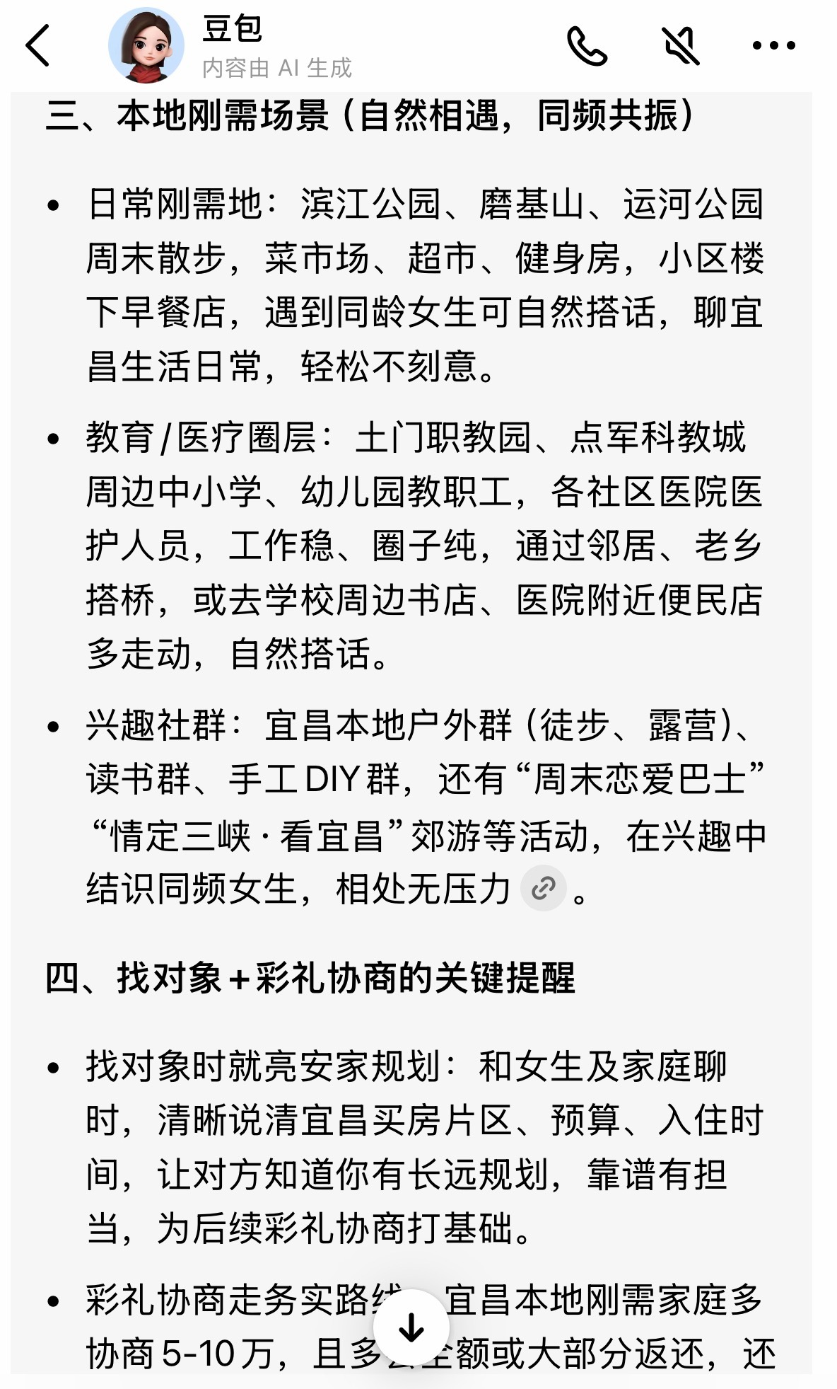 豆包是如何做到对当地了解如此清楚的?有意思的是它列完一堆清单,还补充了“最后想说