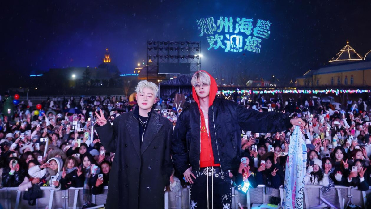 1月1日,中原第二只帝企鹅宝宝百日宴仪式感满满。保育员生动科普帝企鹅家族知识,企鹅宝宝自主选名“团团”,现场抓周赐福萌动全场。夜幕降临,温馨感动旋即转化为澎湃激情,陈卓璇新歌《记忆点》线下首唱,曹杨、林超泽等人气歌手轮番登台,灵动的嗓音与酷炫的舞台点燃全场,游客们在极致音浪中尽情欢呼、跟唱摇摆,伴随着非遗打铁花如星雨散落,中国式浪漫点亮中原。