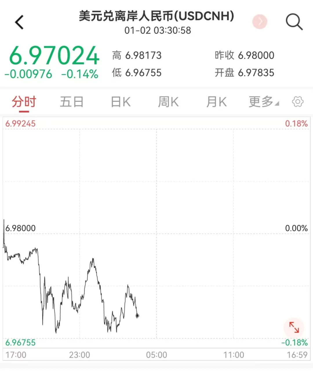 离岸、在岸人民币对美元均升破6.97关口,刷新2023年5月以来新高。