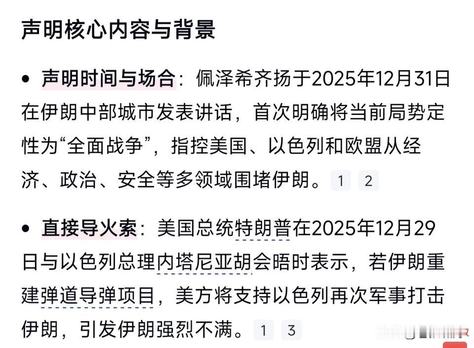 伊朗总统佩泽希齐扬:如果人民对政府不满意,那都是我们的责任,而不是美国或其他任何国家的原因! 我们有责任合理管理资源,提高效率与生产力,并解决好民生问题。我们的失败是有原因的,那就是管理不善所致。我们应当承认自己的失误! 佩泽希齐扬为何说出这话?是否与近来各大城市的大规模游行示威抗议有关?如果确实如此,这番话还是清醒的。外因是辅助,内因是关键嘛! 但伊朗这样的环境,佩泽希齐扬说了算吗?他不怕受到“批评”吗?果不其然时隔不久,他就发表另外言论,声称伊朗正处于和西方全面战争中。 事情起因是尼亚胡访美,特朗普会见他时说:如果伊朗重建弹道导弹项目,美国将支持以色列,再次打击伊朗!作为伊朗总统,听到当然生气! 佩泽希齐扬说:美国欧洲与以色列,正通过经济制裁和军事施压,对伊朗“全面战争”。伊朗将捍卫主权! 重要所在是,前后两段话,哪是真?哪是假?哪是发自内心?哪是说给某人听呢?确实让人费解无法确定。 客观来说,佩泽希齐扬与其前任莱西,都有亲美倾向。他们能当上总统,一是反映民意;二是哈梅批准。也说明哈梅想缓和美欧以关系发展经济。 但关键问题是“哈真胡叙”,还有研发核武器!前者美以耿耿于怀,后者连欧洲都坚决反对!哈梅会答应吗? 也许佩泽希齐扬,同意美欧以条件,但哈梅不答应,他也没办法!只能顺着哈梅意思来,不然总统难保吧? 别的不说,伊朗有两支军队。一支是国防军,由总统领导!另一支是御林军革命卫队,掌控国家命脉,由哈梅领导。两者孰轻孰重?一目了然呐! 鉴于此因,佩泽希齐扬怎么办?该说的话都得说,该做的事都得做!哪是真哪是假?可能只有他自己清楚? 实话实说,美欧以重压下,伊朗左右为难面临抉择!为国计民生?还是为争霸中东?前者顺民心,后者放不下!看哈梅和佩泽希齐扬如何选择了! …………
