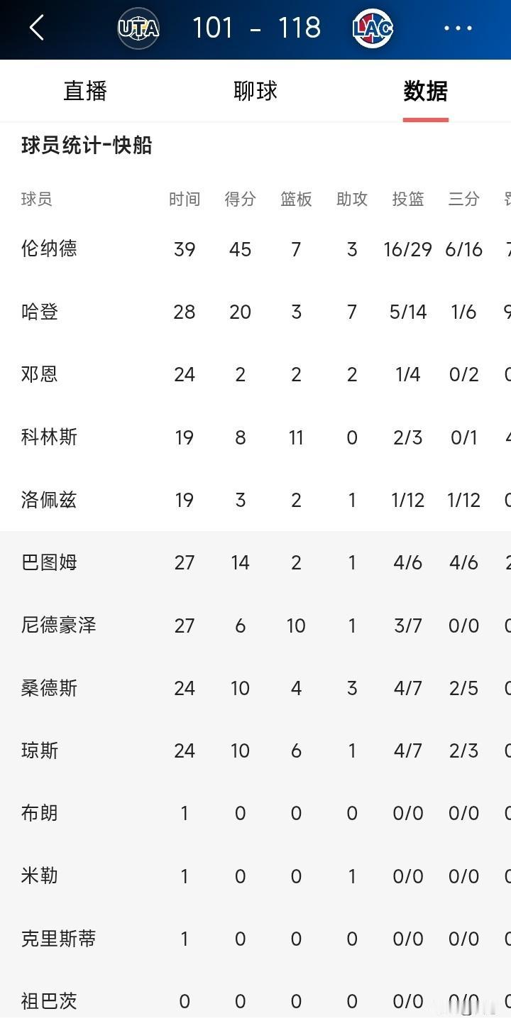 最近的快船强得可怕,不知不觉已经六连胜了,赢过活塞,湖人,火箭,可以说含金量十足。今天快船主场对阵爵 士,快船118比101大胜爵士。开局16比0,没想到后面被爵士反超,最后一节伦纳德爆发,一波流带走比赛。要不是洛佩慈12中1,估计早就花了。 哈登20分,只上了28分钟,这得分太容易了。虽然命中率不高,真实命中率还是可以的。 接下来就是魔鬼赛程了,这是检验快船真实实力的时候。 你们怎么看呢?接下来的5场会赢几次呢? 没有祖巴茨快船6连胜,到底哪里出来问题?