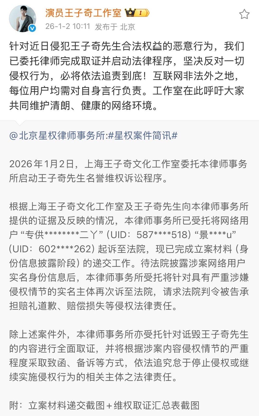 王子奇告黑 王子奇工作室公示告黑名单,已针对侵权行为启动法律程序,侵权行为零容忍