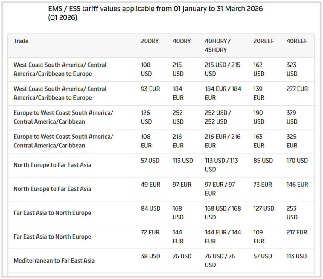 与此同时,主要航运公司也对2026年的欧盟排放附加费进行了调整。马士基对这一附加费的上涨解释称: