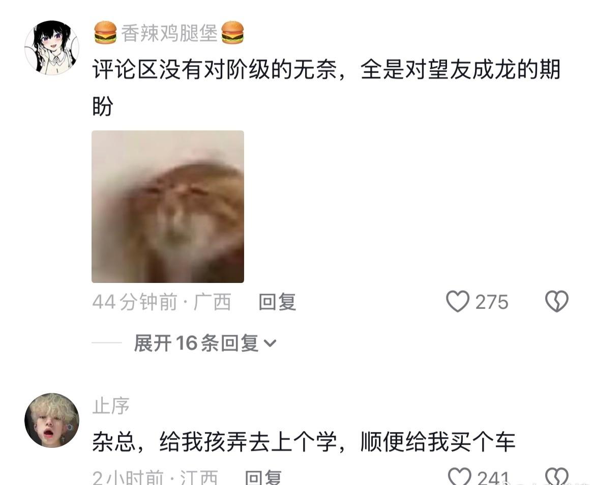 评论区没有对阶级的无奈,全是对望友成龙的期盼哈哈哈哈哈哈哈