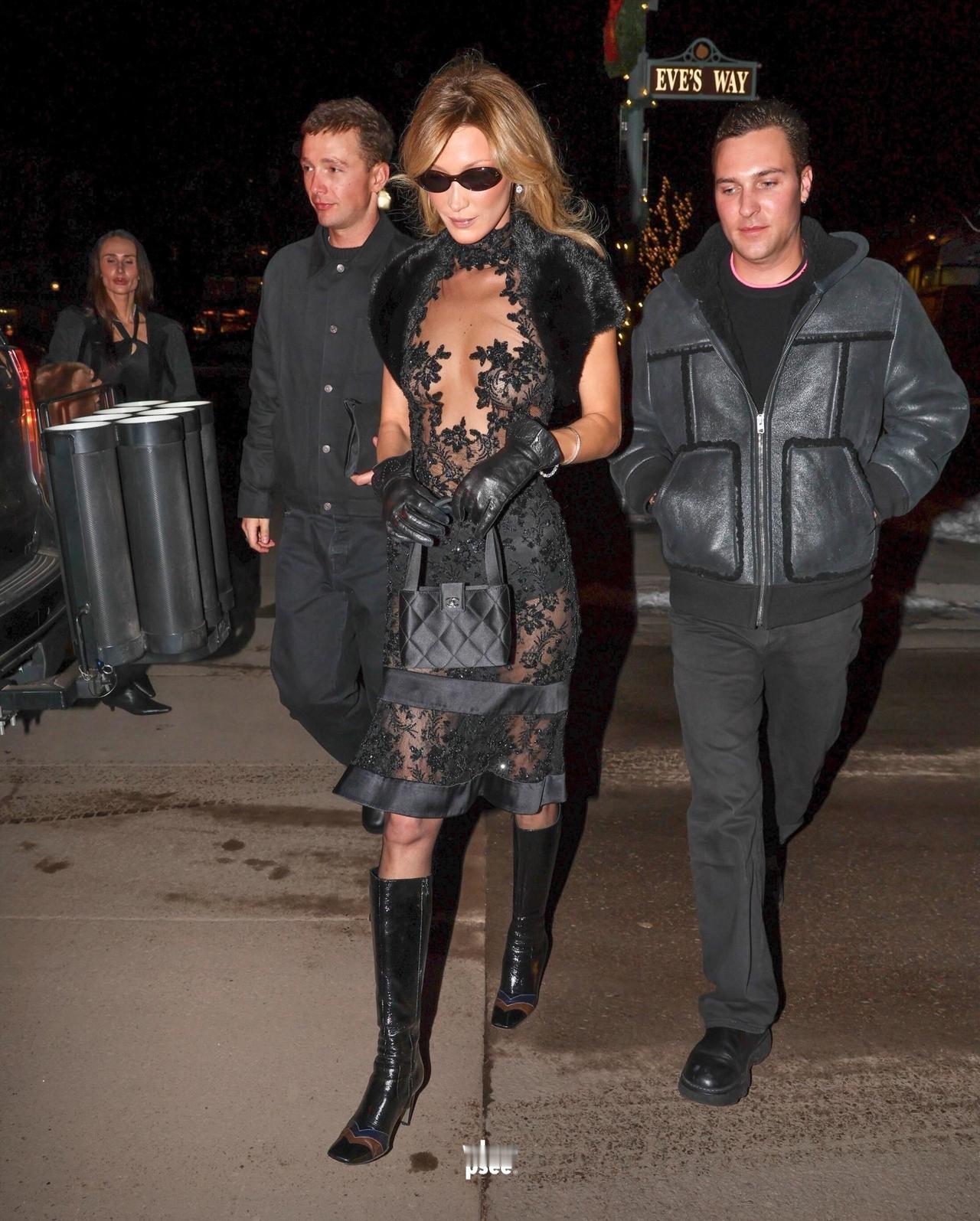 和朋友们一起现身美国阿斯彭滑雪度假的BellaHadid。两套复古造型现身。