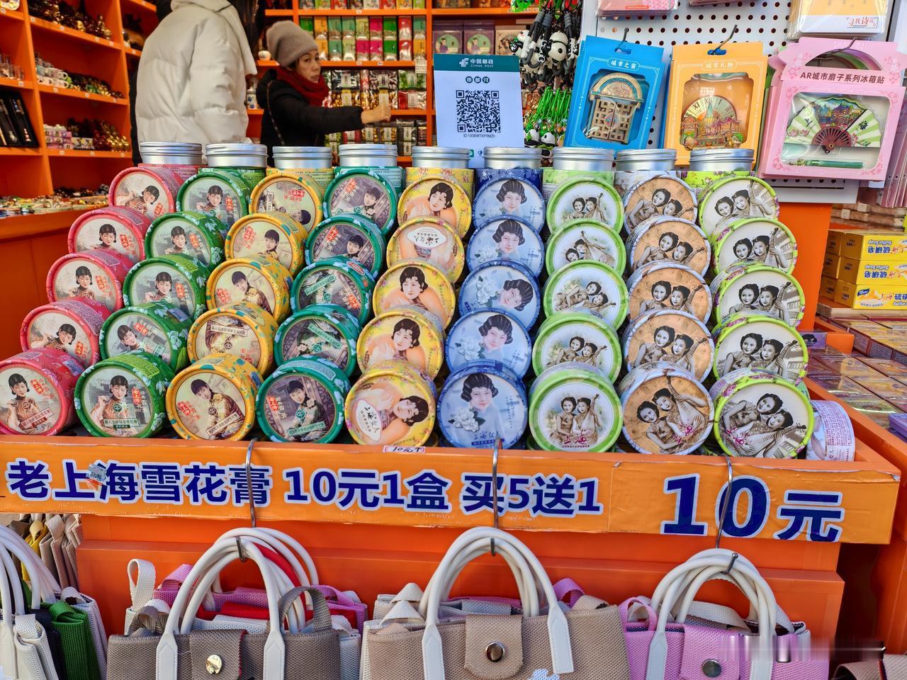 今天的魔都气温-2—5℃,寒风凛冽但有太阳。 豫园去过好多次,旁边有个小商品市场却不曾知晓。 作为上海市区较大的小商品批发市场,福佑门商厦依托豫园的旅游人气,向来人流量不小 。新年第二天,市场内洋溢着节日氛围,各区域都很热闹。 而最热闹的当属一些售卖上海特色纪念品和小吃的摊位,像1楼302号档口,一元起的老上海雪花膏、两元起的冰箱贴等商品吸引众多游客选购。 老上海雪花膏3元、4元、5元买的人最多,我也买了3元和5元两盒回来做个纪念。 豫园景区雪花膏卖10元一盒,没有人买,看来大家都会做攻略哈。 新年第二天的豫园,是把海派年味揉进烟火与光影里的极致体验。刚踏入片区,就被蔓延至方浜中路、福佑路的灯海裹住,憨态可掬的马年灯组与银蓝色未来感灯影交错,古街飞檐下的红灯笼连成暖红星河,脚下青石板路都浸着喜庆。 桥边老字号的香气最是勾人,南翔馒头店的鲜肉小笼咬开爆汁,绿波廊的水晶虾饺晶莹弹嫩,排队时听着邻座上海爷叔用沪语聊家常,烟火气直钻心底。 每一幕都藏着“回老城厢过上海年”的温情 。 今天的城隍庙不收门票,进去一圈人太多赶快出来。 古建筑,老招牌,随人流前行中,仿佛穿越回几十年前的老上海,当然是电视剧中见过的老上海。 大白兔奶糖来一点,见过59元一斤的,48元一斤的,福佑门小商品市场30元一斤,到底哪个正宗不晓得。 今天的一日游,不止是赏灯品食,更是把团圆的暖、传统的韵、新潮的趣,都装进了新年的第一份美好记忆里。 逛够了,看过了,太冷啦,赶快回家吧! 上海豫园打卡地 豫园风情