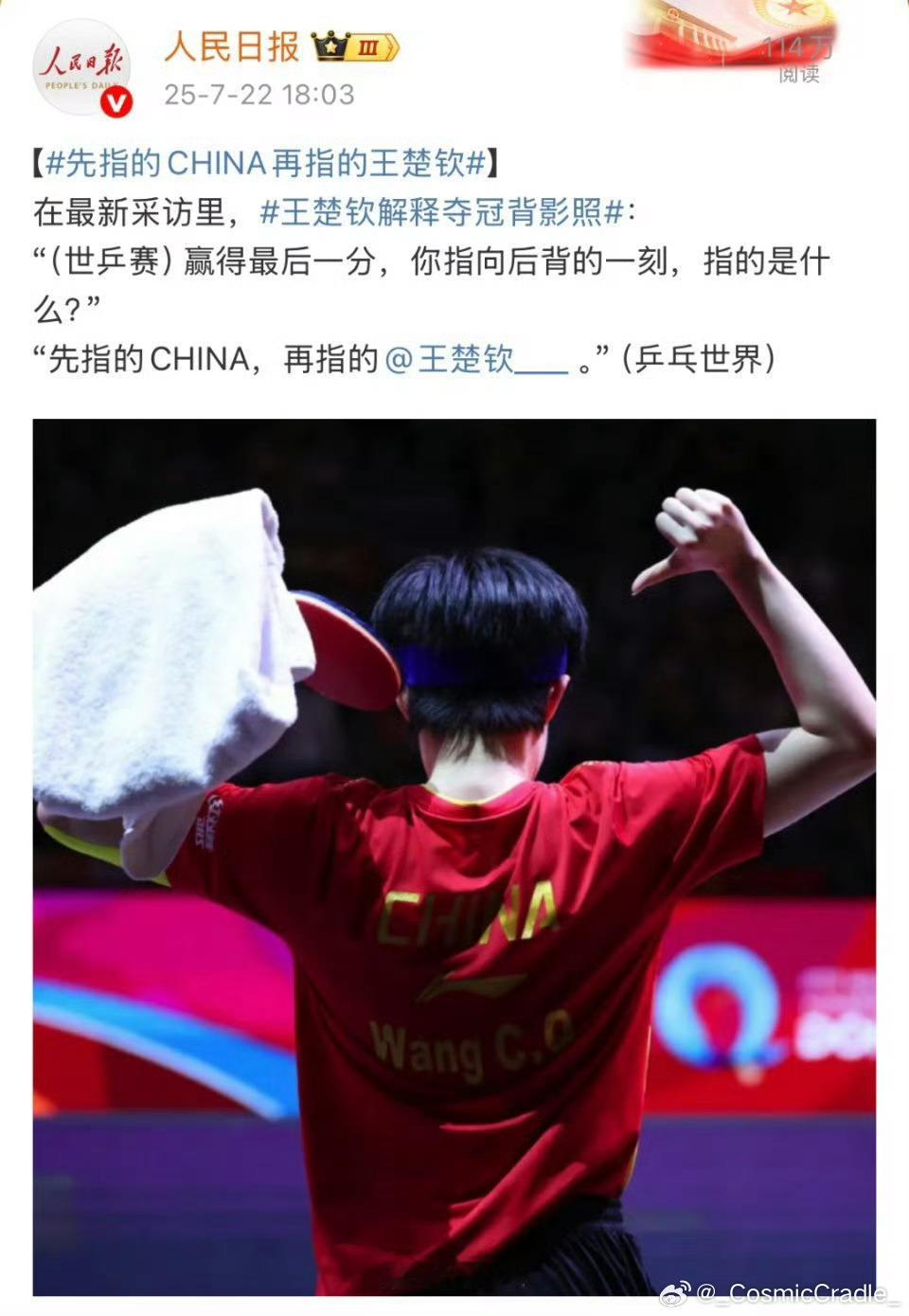 王楚钦 生在红旗下,长在春风里,目光所至皆为华夏,五星闪耀皆为信仰🇨🇳五星红旗的升起永远是楚钦前进最大的动力中国乒乓球队永远不怕困难,辉煌靠的是团结一心,一致对外楚钦领军发言继续加油,为国争光
