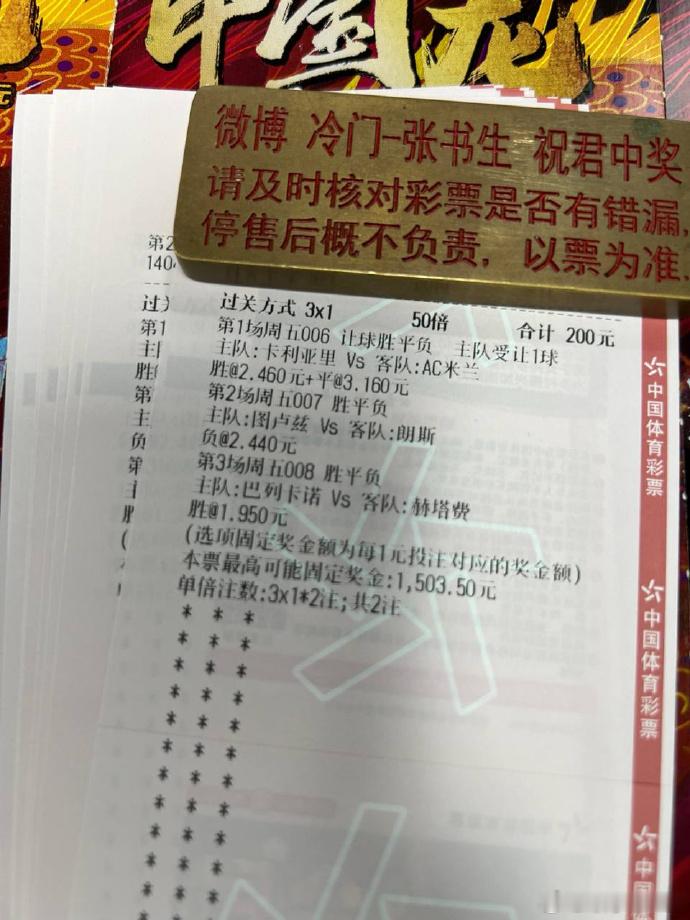 书生今日预测!巴列卡诺行!赛事:006 意甲球队:卡利亚里VSAC米兰方向:让胜/让平比分:0-1 1-1 1-2赛事:007 法甲球队:图卢兹VS朗斯方向:负比分:0-1 0-2 1-2赛事:008 西甲球队:巴列卡诺VS赫塔费方向:胜比分:1-0 2-0 2-1重❤️二窜【巴列卡诺+朗斯赢球】巴列卡诺保级压力巨大,主场战意强烈,且交锋中占优;赫塔菲客场防守漏洞多、状态平平。看好巴列卡诺主场取胜!