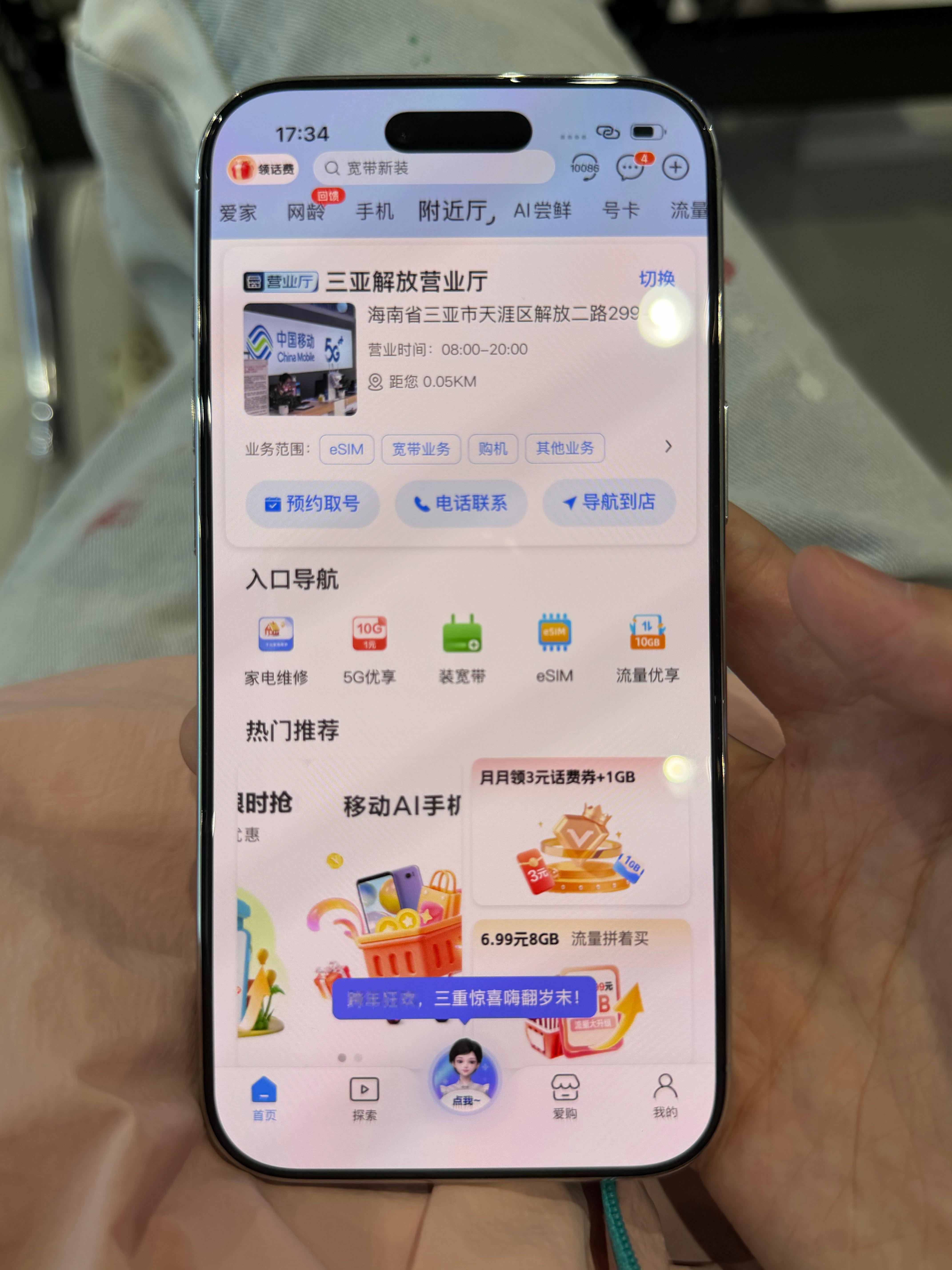 我觉得在大家呼吁esim转为线上办理之前,先理性的呼吁增加办理esim门店的权限吧我先说我是中国移动,整整一个三亚市,整个三亚有且仅有一家门店能办理esim,这个门店还只有5个窗口能办理esim,这么说全三亚市仅有五个窗口能办理esim,等了20分钟才过了3个号,而我还有20个号😅也是挺够抽象的,一个省的第二大市,中国移动可以办理esim有且仅有一个门店esim本来就是为了方便,但非要来营业厅办理,属于是逆向升级。