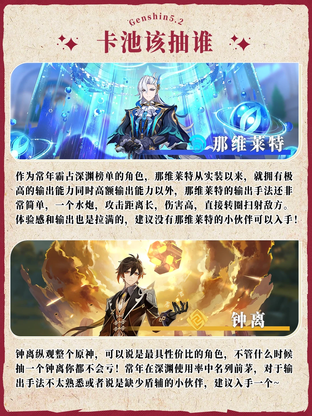 5.2版本卡池抽取建议攻略!你想抽谁呢?