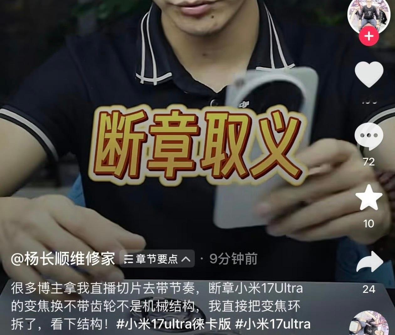 小米辟谣变焦环造假真的有的就见不得人好啊,冲击高端的时候也是抹黑,这下冲击高端成功了,抹黑得更加离谱。所谓“变焦环造假、软件模拟”,杨长顺已经澄清:早期直播根本没来得及拆内部结构,而最新拆解视频里,机械变焦环的完整结构、传动逻辑全程展示,证据摆在那。前脚还在带节奏说“变焦环松动、品控翻车”,后脚又改口成“造假”,这都一套一套的,hei子说了上一句,我都能想到下一句要说什么了,话术都懒得升级,说白了,不就是不想承认别人把东西做成了。况且品牌都已经被迫练成“耐黑体质”了,你看这几年被黑得越狠的产品,反而卖得越好,这都是定律了。我还是要友好的建议一下hei子们,清朗行动一直在继续哦!流量不是免死金牌,网络也不是法外之地,哪天律师函送到你手上就来不及后悔啦!
