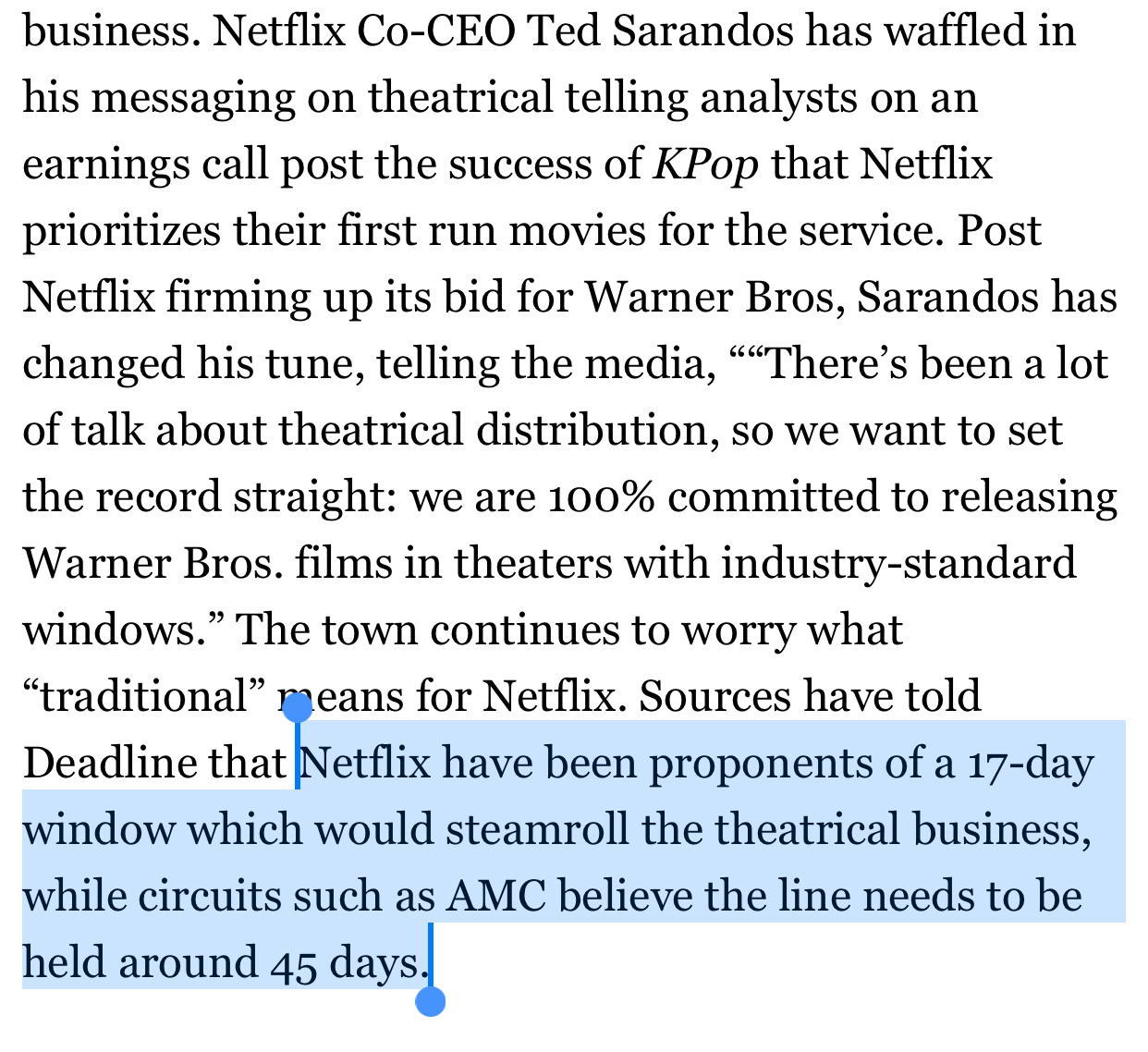 TNABO Deadline消息:Netflix致力于推动17天院线窗口期,而这很可能是收购完成后给所有华纳电影提供的待遇