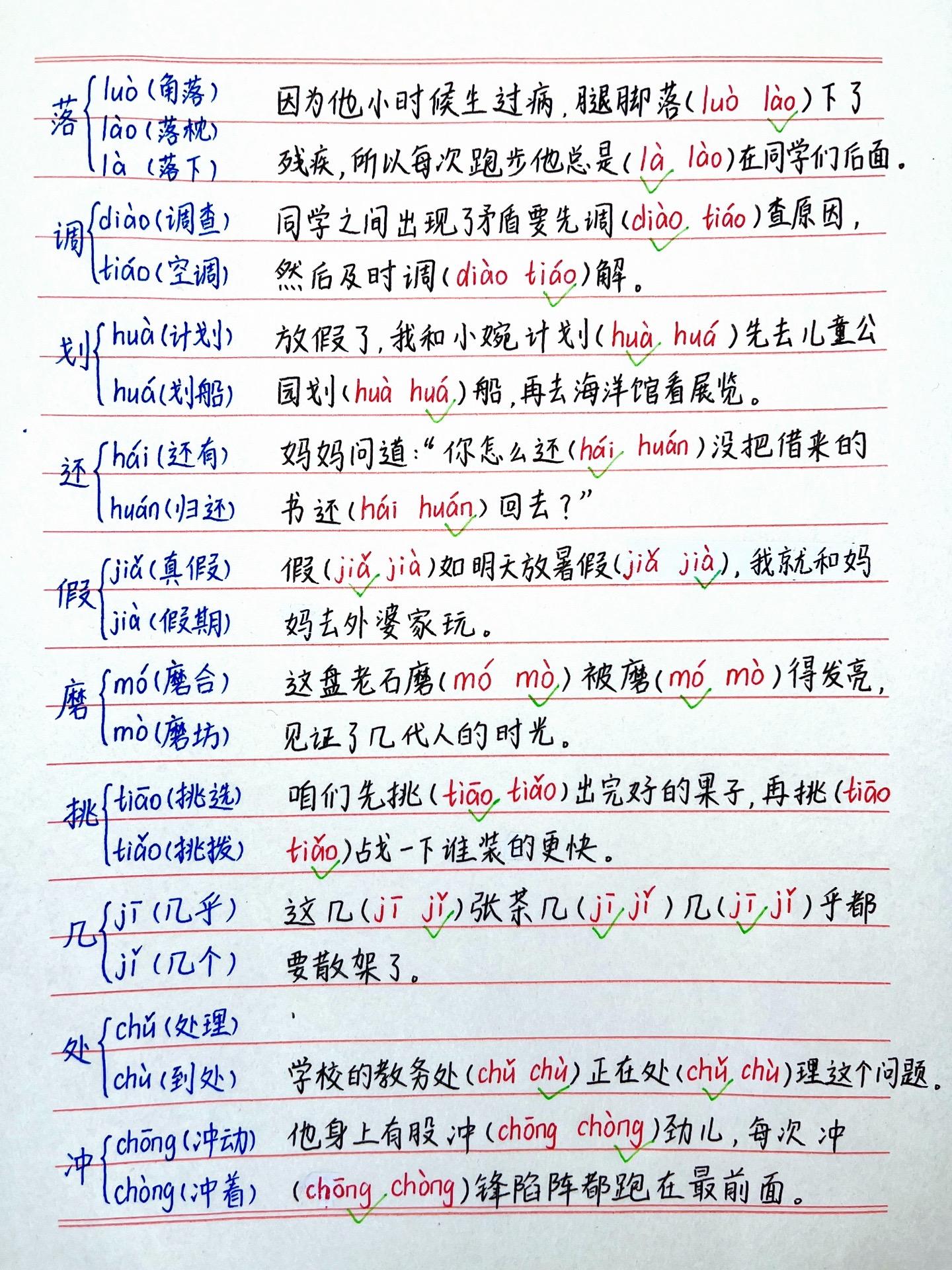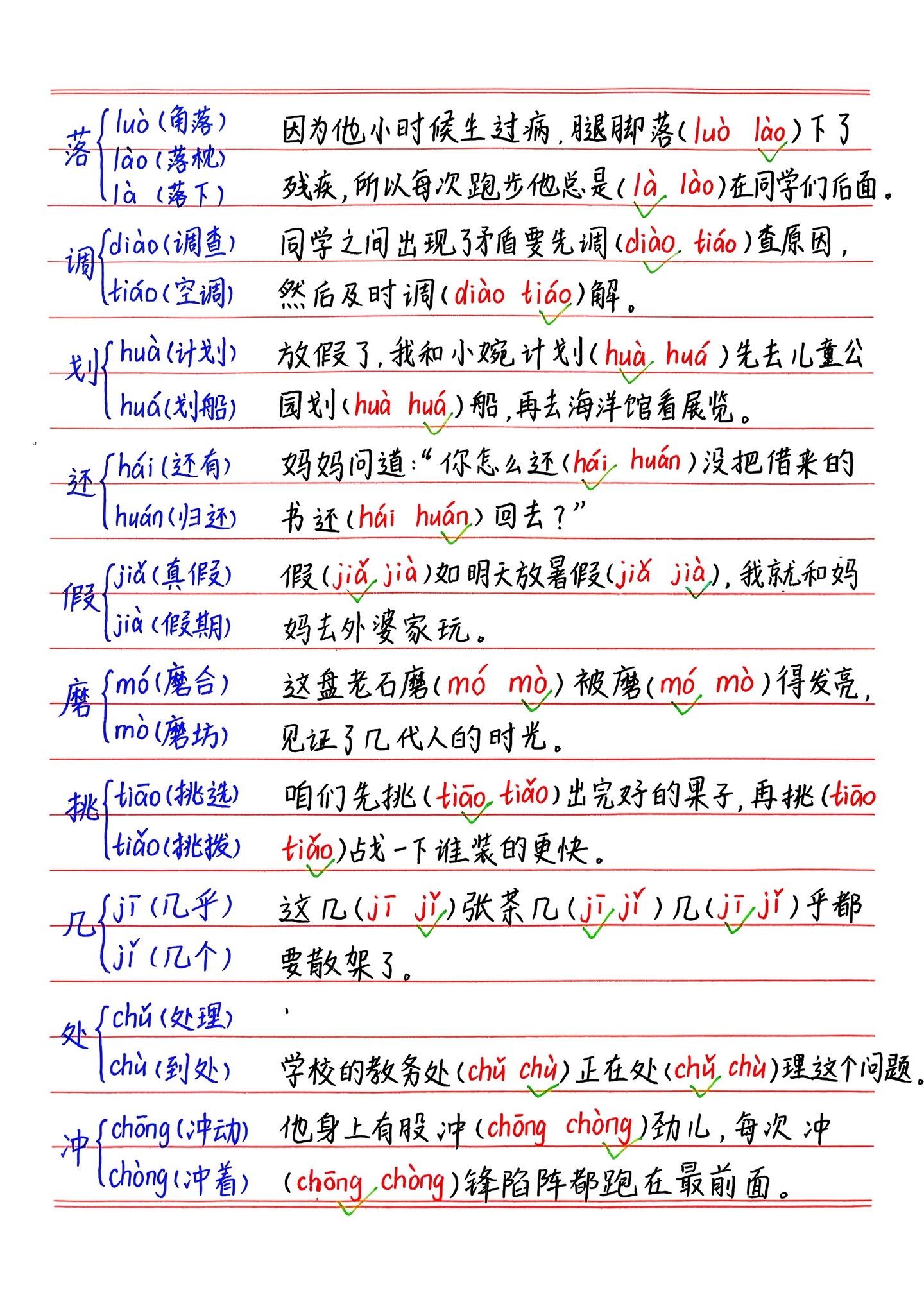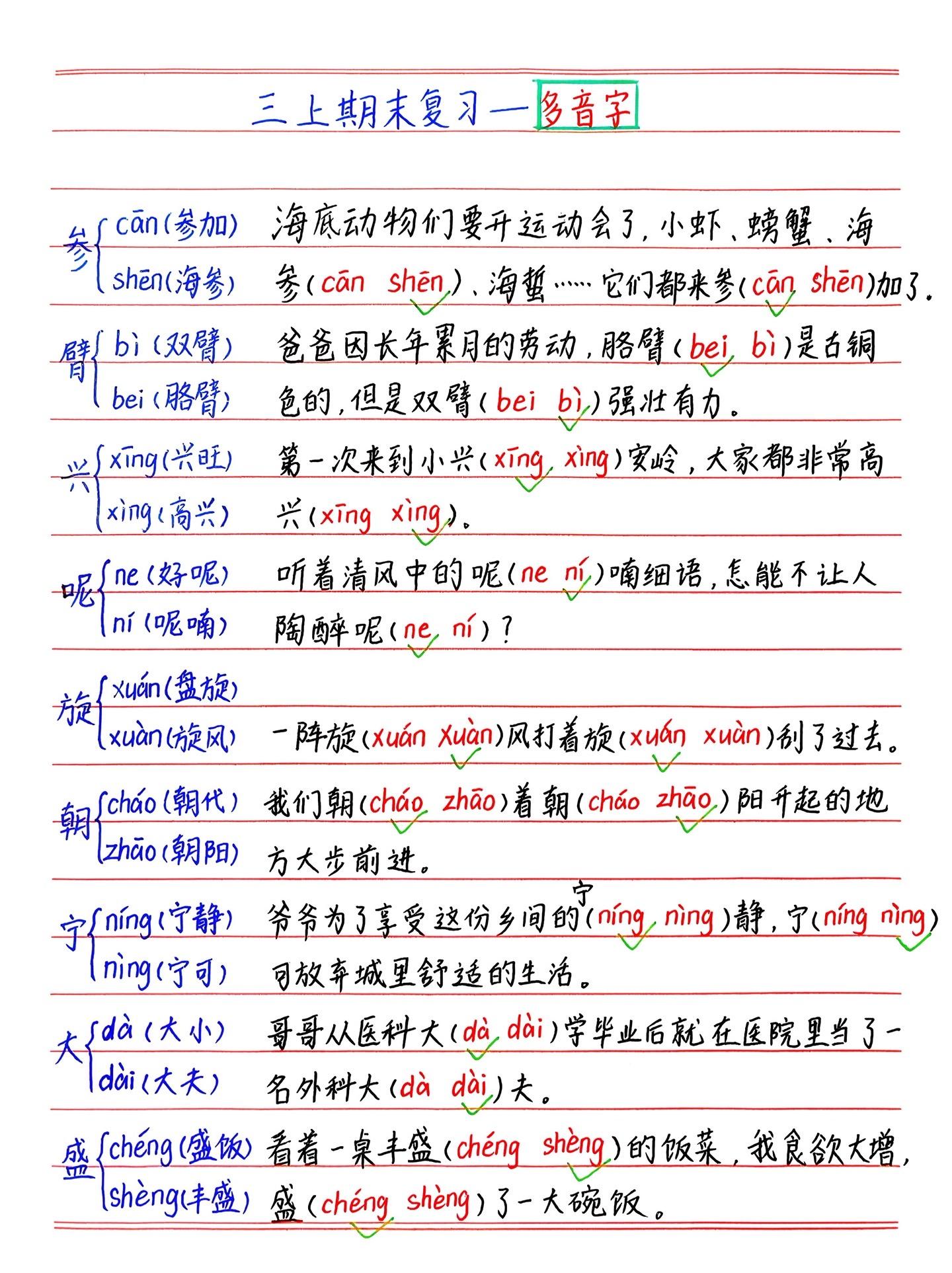 三年级上册语文 期末复习——多音字。给孩子读一读记一记。