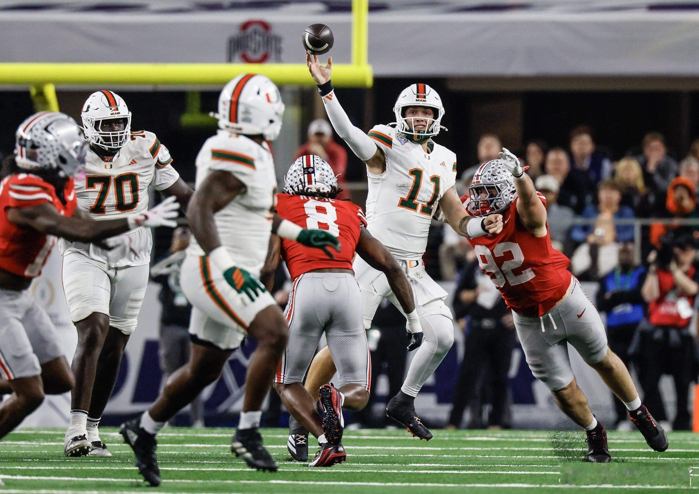 次轮排名第10的迈阿密大学24:14淘汰排名第2的俄亥俄州立大学