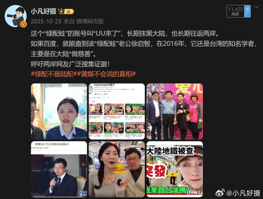 一只🐸与一只哈尔滨“绿配蛙”的表演............又是全程口述的视频,难道当地公安机关就该被抹黑?如果百度,就能查到该“绿配蛙”老公徐启智,在2016年,它还是台湾所谓的知名学者,主要是在大陆“做慈善”。绿配不是陆配黄媒不会说的真相