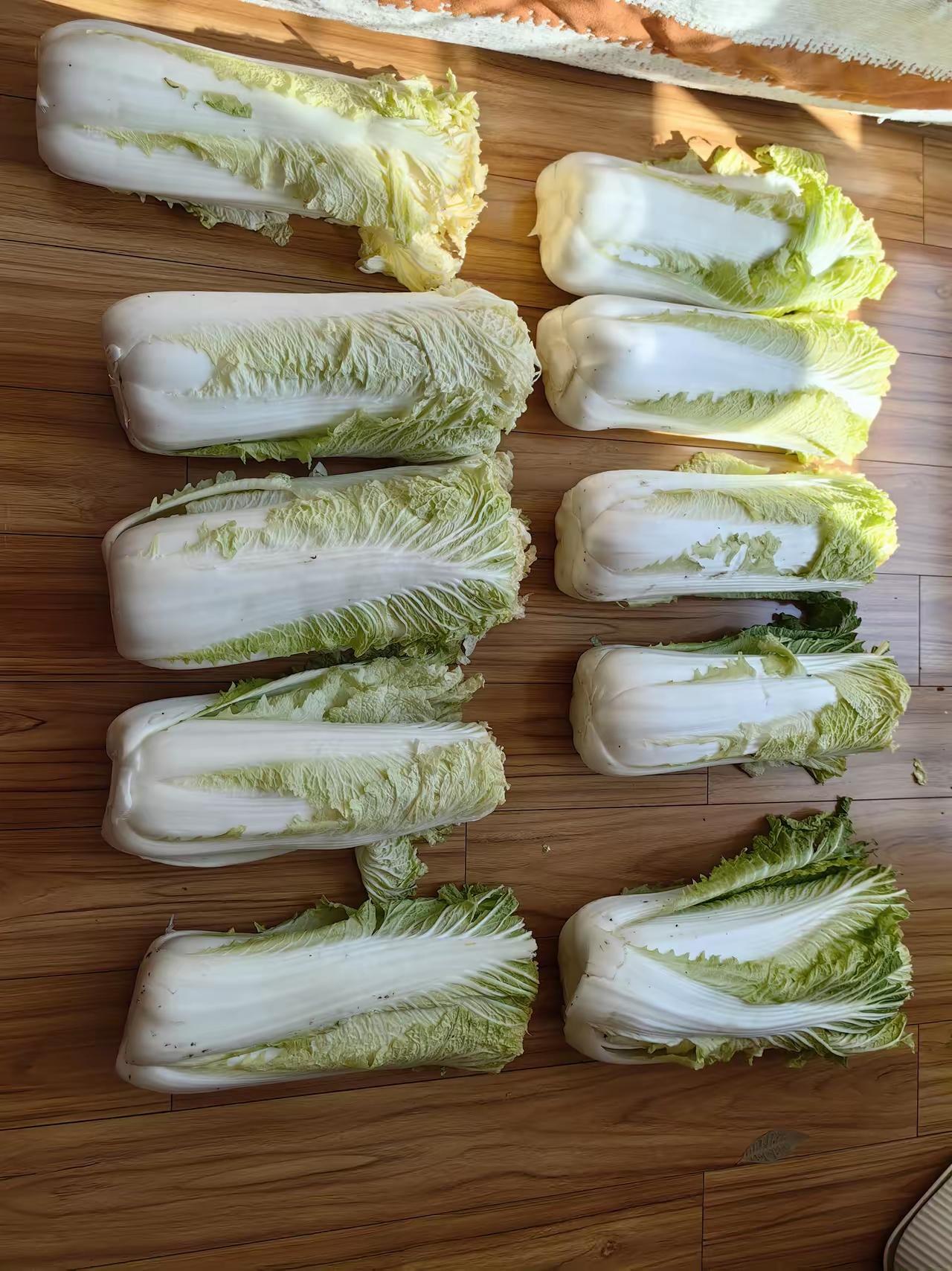 飞走了两颗? 哈哈哈:觉得有些好笑,早上赶早市买了一袋子大白菜,感觉水分有些大,就放在小花园旁的台子上晒晒,准备晚上拿回家,去去水分好储存,结果呢?两颗不翼而飞了,太有意思了吧! 大家看看:十二颗变成了十颗,邻居老哥还打趣,说我买的白菜好看漂亮,不然就再在这儿待上一晚上,看看啥结果,得了吧?我才不上他的当,我还等着这些白菜过冬来,哈哈哈…… 有意思吧?