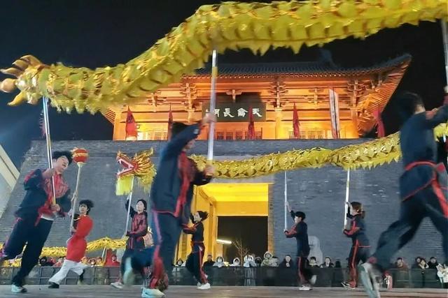 节日里的撮街张灯结彩,喜气洋洋,城门楼前的表演广场被慕名而来的游客围得水泄不通。从高处俯瞰,数十条祥龙交织飞舞、流光溢彩,构成一幅“龙腾九霄庆新年”的壮丽画卷,浓浓的传统年味扑面而来。