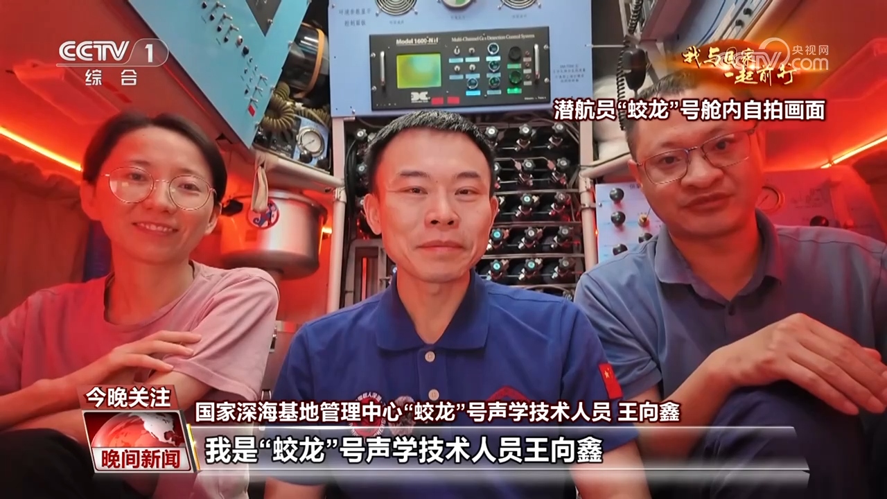 国家深海基地管理中心“蛟龙”号声学技术人员王向鑫:大家好,我是“蛟龙”号声学技术人员王向鑫,是今天下潜任务的副驾驶,我的主要任务是负责声学系统保障和辅助拍摄。