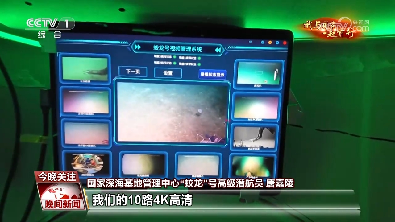 国家深海基地管理中心“蛟龙”号高级潜航员唐嘉陵:大家看到我们现在升级之后的这个视频系统我们的10路4K高清,还有大角度的观察,我们这个水下的视野更好了。
