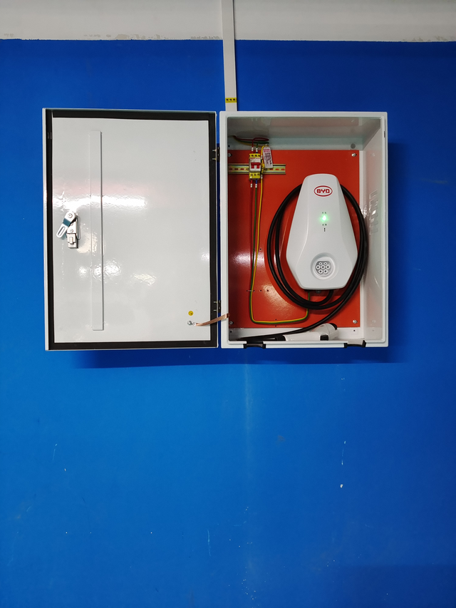 充电桩安好以后可市区可以纯电开啦 今天安装好充电桩了。 好说歹说,还是给我增加了八米线 物业和安装师傅都不怎么地道。 物业要求,要不走桥架,要不穿PVC线槽(不能PVC管)沿着走车库天花角走。 安装人员肯定是选择最简单的走桥架,还说他们没有PVC线槽要自己去买。 所以就超过30米,多的8米每米45元,我来我买单。 还有一个问题吐槽,租的车位左侧是柱子,但是车子充电口在右侧,标配的充电枪线只有3米,联系售后如果换7米的要花500多元自己买。所以安装在车位后面墙壁的右侧,怕车撞,我要求安高一点(箱子立离地1.5米),车停好后距离有点窄,箱子门不能完全打开,使用不是非常方便。 箱子是某宝买的,275元(跳锁款,我自己有一个闲置的密码挂锁),安装收了50元安装费。他们卖的密码锁款价格450,是要比我这个好看一些。不过使用功能完全一样。