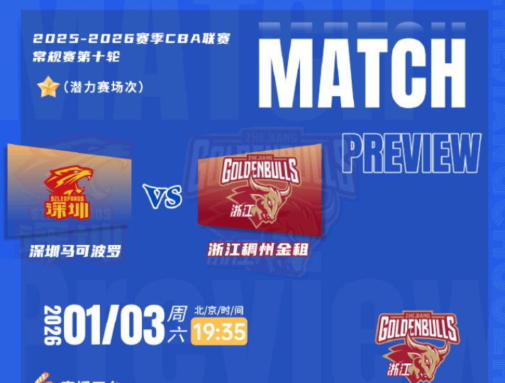 虎扑01月03日讯今日CBA常规赛:浙江男篮将对阵深圳男篮。