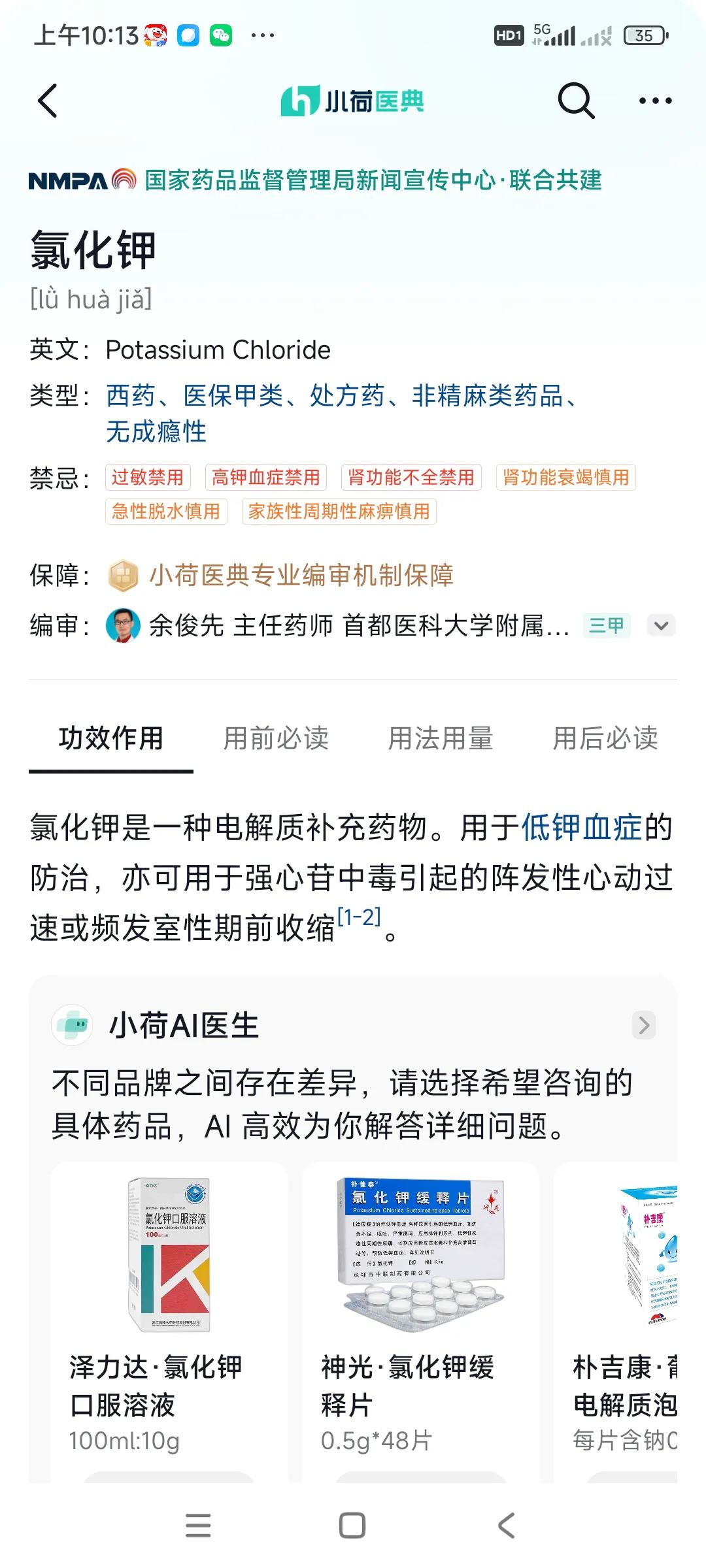 这个美女护士有个性,是个牛人,这要是和她谈恋爱,要专心致志,别无二心,不要胡思乱想,要不然,她给你推氯化钾,让你迷糊了,,,,[捂脸][捂脸][捂脸] 我开始以为这个氯化钾,会不会是电影上军统特务用的秘密武器,喝下去不省人事了,后来上网查了,才知道是处方药,作用是啥,也没弄明白,,[捂脸][捂脸]
