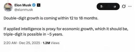 美国GDP很快还要翻倍?马斯克突然发布惊天大预言!美国经济很快要爆发增长,因为Ai智能应用!真的令人觉得不可思议! 马斯克这张嘴一开口,就没让人省心过,前阵子刚靠特斯拉自动驾驶、SpaceX星舰赚足眼球,转头就在2025年末的行业峰会上扔出个更炸的预言:未来五年美国GDP能实现三位数增长,说白了就是要翻倍,核心驱动力就俩字:AI。 这话说完,不光网友吵翻了天,连华尔街的分析师都分成了两派,一派说他又在画“科技大饼”,另一派却盯着美国经济的真实动向,觉得这事儿未必是空想。 可别觉得这是瞎吹,美国经济现在的处境,还真需要AI这么个“突破口”。这些年美国经济看着表面光鲜,实则藏着不少老毛病:联邦债务都突破38万亿美元了,2025年光付利息就占了财政收入的15%。 制造业常年缺人,2025年三季度制造业岗位空缺还剩120万个;就连消费市场都有点疲软,零售销售额同比增速只剩2.1%。就在大家都在琢磨“美国经济靠啥续命”的时候,AI反倒成了意外冒出来的“救星”。 2025年美国商务部公布的三季度GDP增速是4.3%,乍一看不算惊艳,但细扒结构就会发现门道:AI相关产业对GDP的拉动贡献了1.57个百分点,这比例比私人消费还高。更关键的是,AI带来的不只是单个行业的提升,而是全链条的效率革命。 就拿劳动生产率来说,2025年美国企业因为普及AI工具,整体劳动生产率提升了17%,制造业人均年产出突破20万美元,快追上德国的水平了。 要知道前几年这一数据增速还常年徘徊在1%左右,AI算是直接把效率拉上了新台阶。 而且AI早就不是科技圈的“专属游戏”,已经渗透到美国经济的各个角落,连中小企业都在跟着蹭红利。美国银行的小企业经营报告显示,2025年9月小企业在科技服务上的支出同比涨了6.9%,其中制造业和建筑业的小企业最积极,买AI监控设备、用AI做订单管理的不在少数。 再看零售行业,梅西百货用AI分析顾客消费习惯,把精准营销的转化率提了30%;联合利华旗下的冰淇淋品牌,在八千台冰柜里装了AI摄像头,库存不够自动报警,就这招让冰柜销量平均涨了13%。这些看似不起眼的小应用,凑在一起就是拉动经济的大力量。 马斯克敢拍胸脯说GDP翻倍,和他自己的产业布局也有关系。他旗下的特斯拉,Optimus机器人现在的反应速度是人类的十倍,2026年的产能目标定到了1亿台,要是真能实现,单靠机器人业务就能创造30万亿美元的收入。 SpaceX的星舰计划一旦落地,全球物流成本能降90%以上,到时候国际贸易的效率会再上一个台阶;还有他的xAI团队,Grok大模型每周都在迭代,已经能处理复杂的工业设计任务,距离通用人工智能越来越近。 也难怪2025年11月特斯拉股东愿意批给他1万亿美元的薪酬方案,本质上就是赌他能把AI的潜力彻底挖出来。 不过话说回来,就算AI势头再猛,马斯克说的“GDP翻倍”也不是板上钉钉的事儿。现在美国的就业市场已经因为AI出现了波动,2025年11月非农就业数据都推迟发布了,不少传统岗位被AI替代,这要是处理不好,反而会影响消费市场;再加上联邦债务的压力,要是政府拿不出足够的资金支持AI基础设施建设,产业落地也会受影响。 但不可否认的是,AI驱动经济增长已经是实打实的趋势,美国作为AI领域的先行者,确实占了先机。 说到底,马斯克的预言更像是一种对AI潜力的极致预判,未必能百分百实现,但至少点出了美国经济未来的核心方向。以前大家总说美国经济靠金融、靠消费,现在AI成了新的风向标。至于最后能不能真的实现GDP翻倍,还要看技术落地的速度、就业市场的适应程度,以及政府的调控能力。 有一点可以肯定,AI给美国经济带来的增长动力,接下来几年都会越来越明显,这波科技红利,美国是铁了心要先吃为敬了。