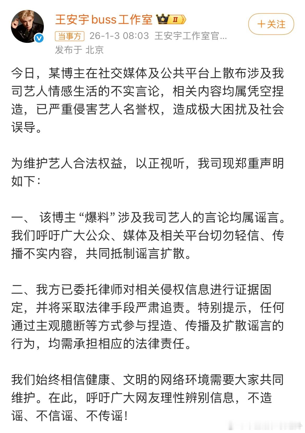 司晓迪 目前已经发了工作室声明的男明星有:鹿晗、檀健次、林更新、范丞丞、黄明昊、周奇、王安宇。