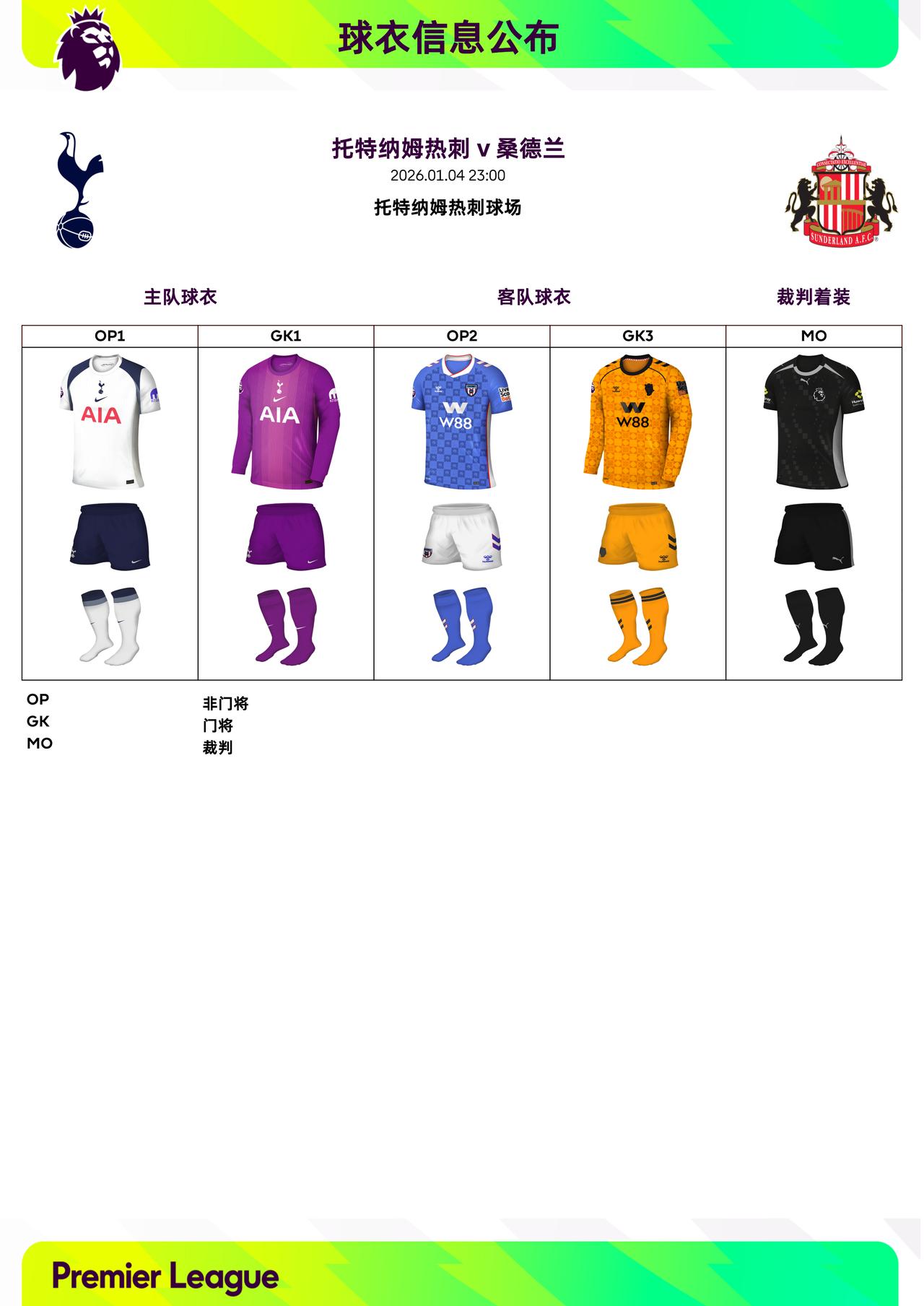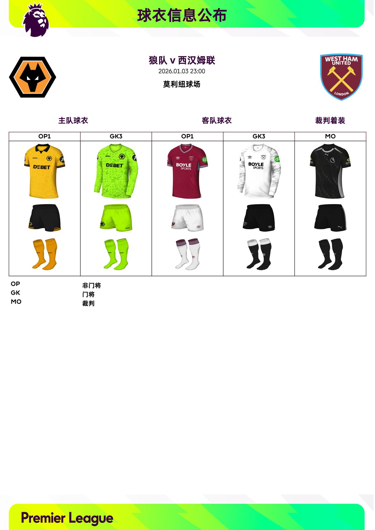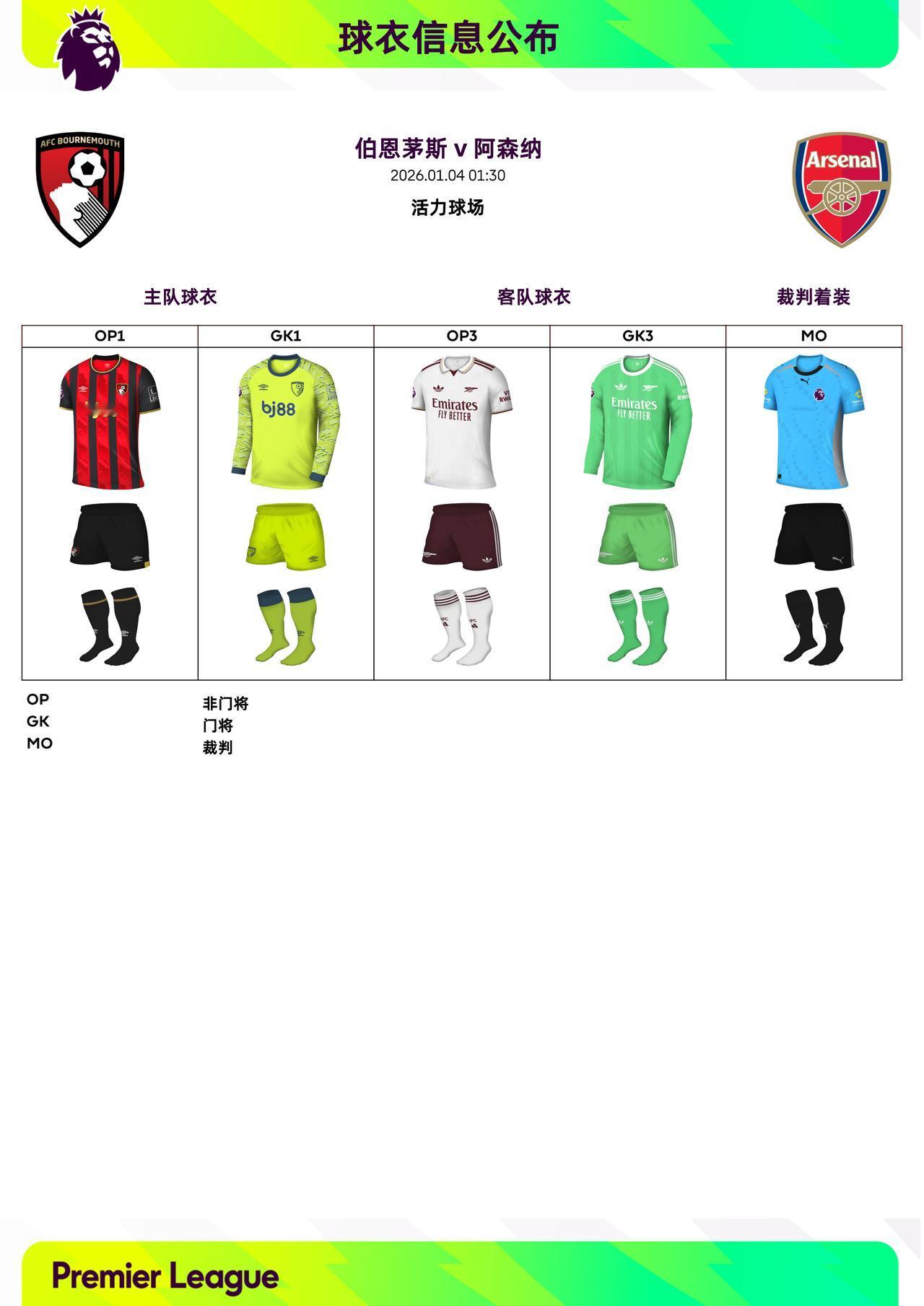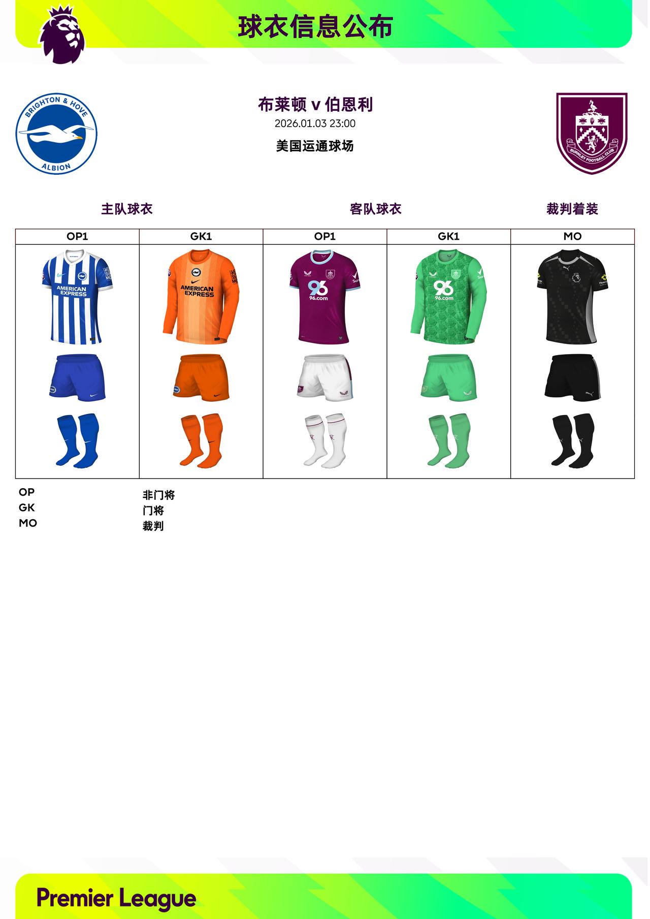 2025/26赛季英超联赛第20轮球衣信息: ◉ 焦点战——曼城 v 切尔西 ,双方均穿主场球衣,上演“双蓝会”