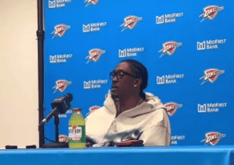 赛后,雷霆球员杰伦-威廉姆斯接受媒体采访,谈及勇士球员斯潘塞对球队替补席说的话,杰伦-威廉姆斯表示: