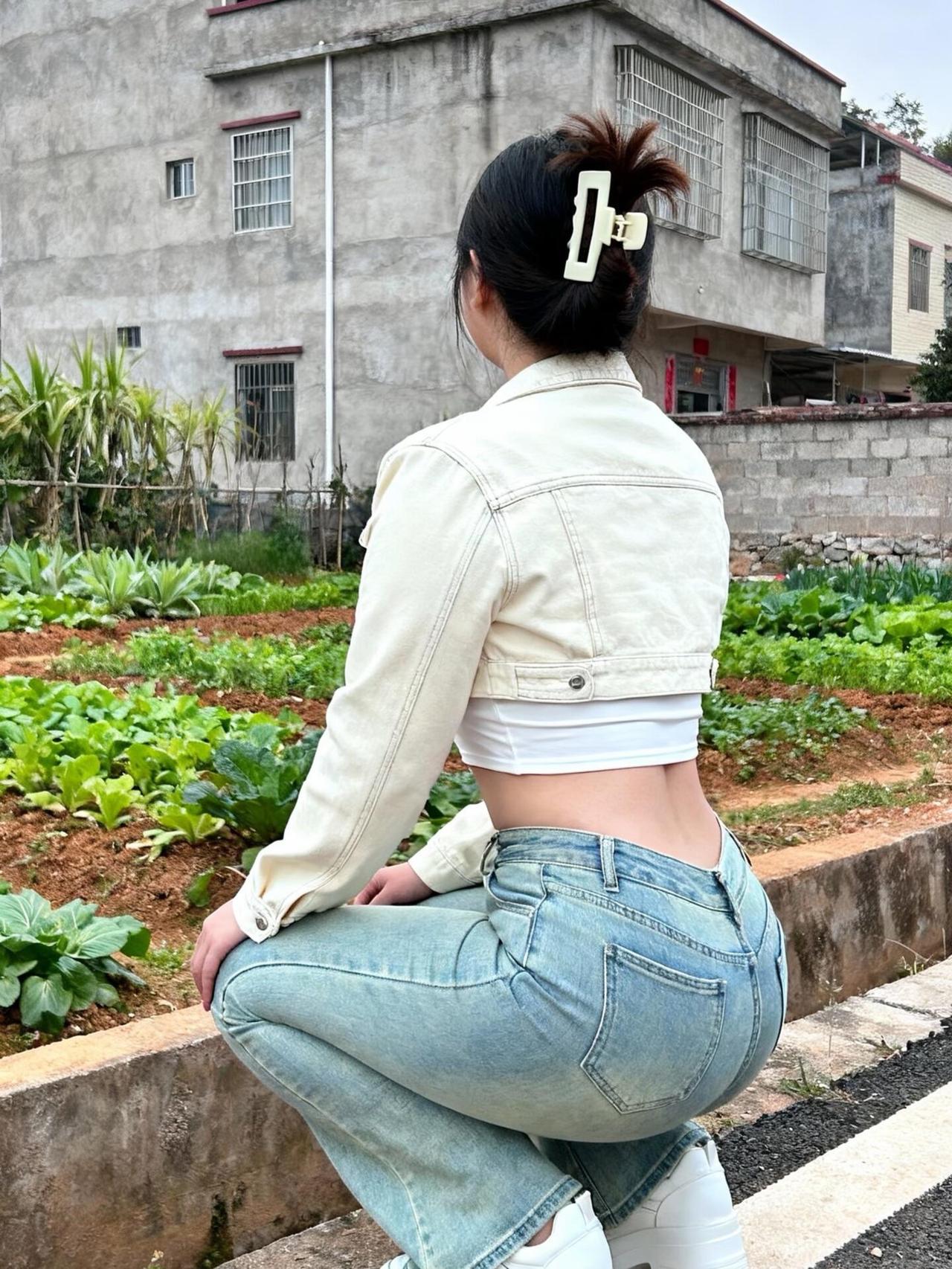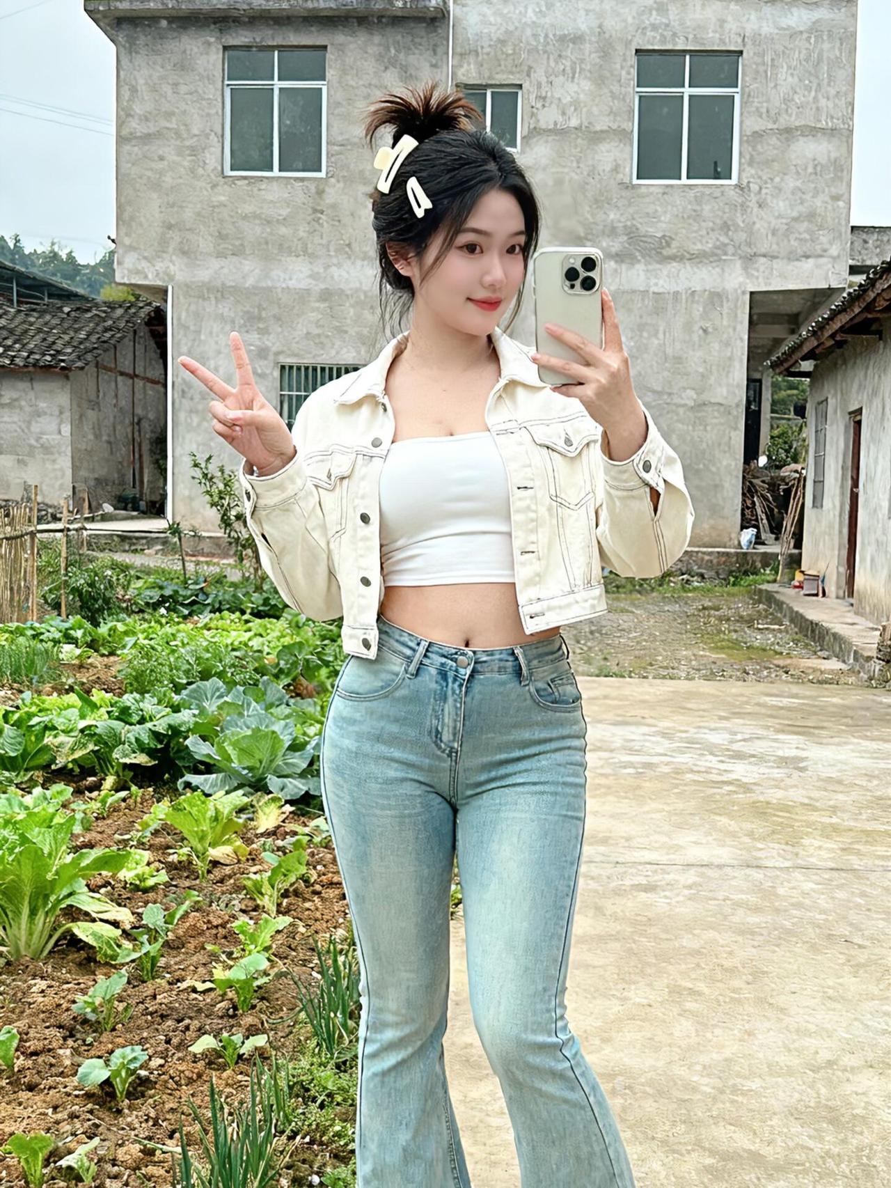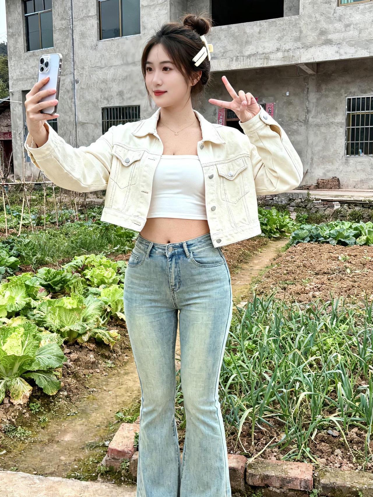 回村穿搭被夸爆!短款牛仔外套+微喇裤,菜园子秒变秀 回村穿这套在自家菜园子拍照,邻居路过都夸“城里回来的姑娘真会穿”~ 短款米白牛仔外套太绝了,宽松但不压个子,内搭白色短款抹胸,露出一点点腰腹超辣!重点是这条浅蓝微喇牛仔裤,高腰设计直接把腿长拉满,裤型包裹感绝了,显得腿又直又细,微喇的裤脚走路带风还特别有复古感~ 头发用大鲨鱼夹随便一抓,再别两个小发卡,随性又出片~站在绿油油的菜园子前比耶自拍,背后是老家的房子,感觉把都市辣妹感和乡村治愈感融合得刚刚好~(悄悄说:摘菜时外套一脱,干活也方便~) 你们回村都怎么搭?快来分享让我抄作业! 回村穿搭 微喇牛仔裤 短款外套 辣妹风 乡村氛围感