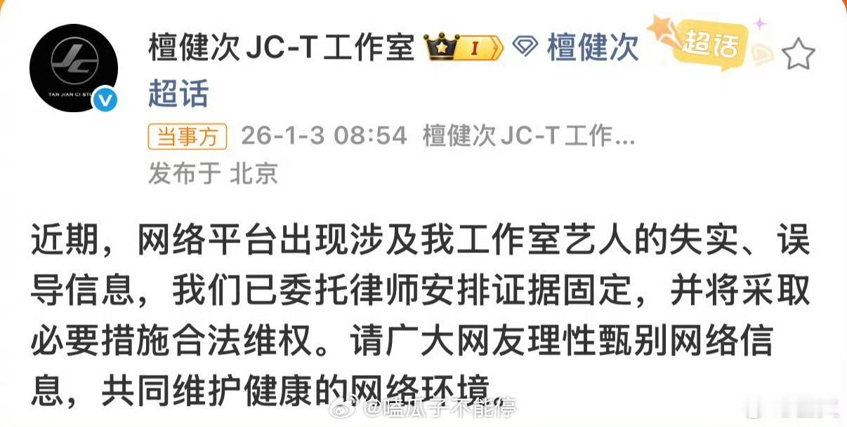 檀健次工作室发公告檀健次工作室发声明了,檀健次无妄之灾