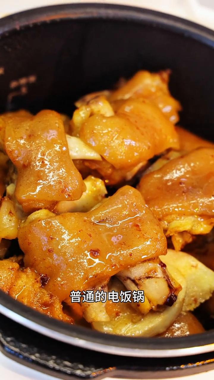猪脚闻起来好香,猪脚酱做好好吃,又香又q。放凉了之后拿当零食吃很好吃的。 ·猪脚买的时候让老板帮忙砍的大块一点,再加上去腥三件套焯一下水,面上的浮沫撇干净后再煮五分钟左右,拿出来过一遍清水就很干净了。 ·然后腌制,加上一包盐焗粉,老抽上色,用的一丢丢就可以了。最后来上一勺芝麻油,多抓一会让猪脚更好入味。腌一个小时以上。 ·用电饭锅来做菜就不需要去开火,也不用担心会焦。锅底可以先垫上一层姜片,增香的同时也可以防粘。腌出来还有点点汁,把汁淋上来就不需要再去加水了。 ·电饭锅按上煮饭键或者是有无水焗的键也行。我用的盐焗粉是这款竹盐盐焗黄,它是没有什么防腐剂跟甜味剂的,主要添加里有砂浆跟竹盐,做出来菜就很香。两斤多的食材一般放一包就够味了,不用加其他。 普通的电饭锅如果想要吃软糯的口感,可以按上两次煮饭键。趁着吃猪脚是那种软软糯糯的,咸香又入味。放凉了吃是qq弹弹的,还带一点点嚼劲,当刷剧、小零食也是不错的。这款盐焗猪脚冷的吃、热的吃都非常香,真心推荐朋友们去试一下。