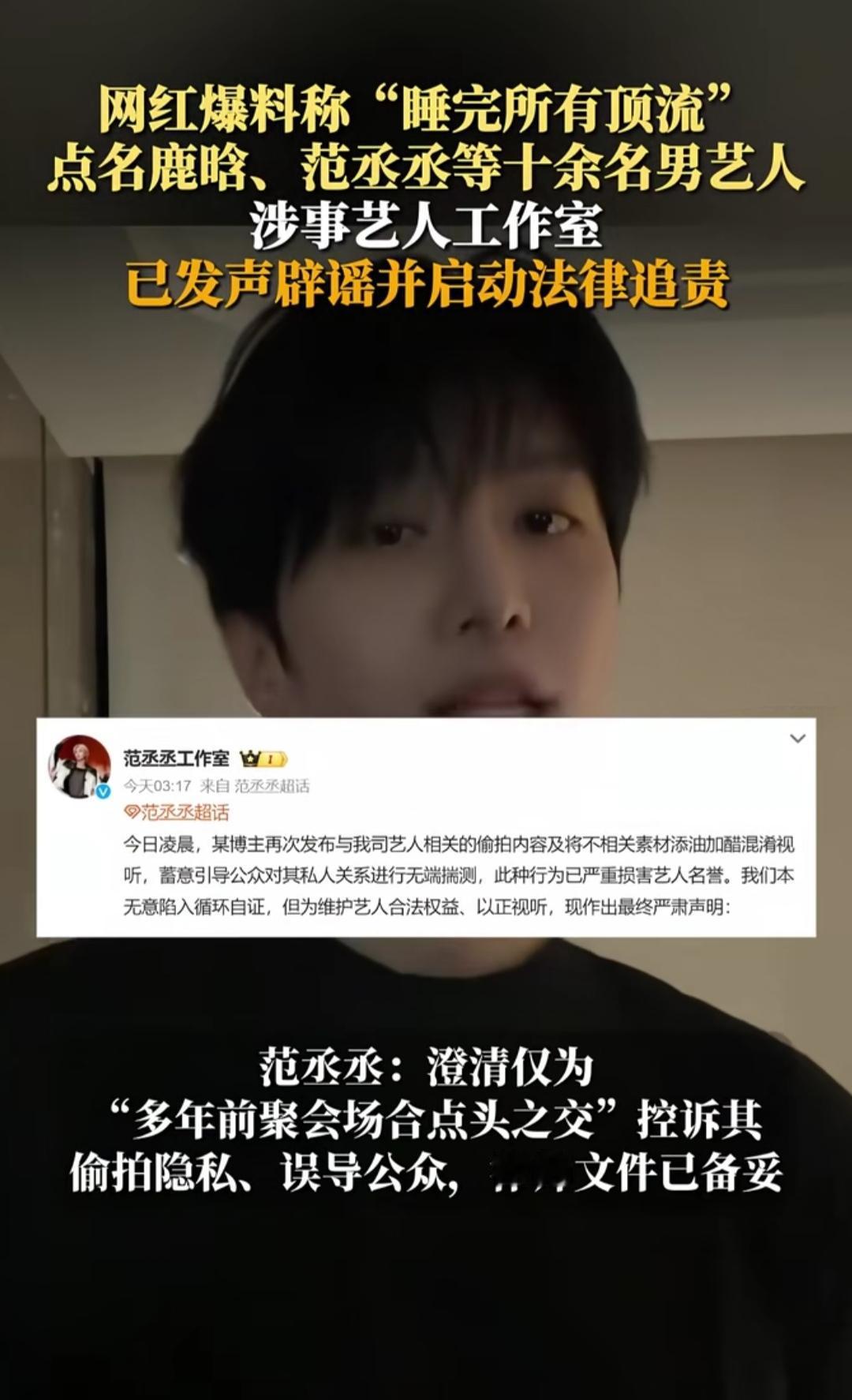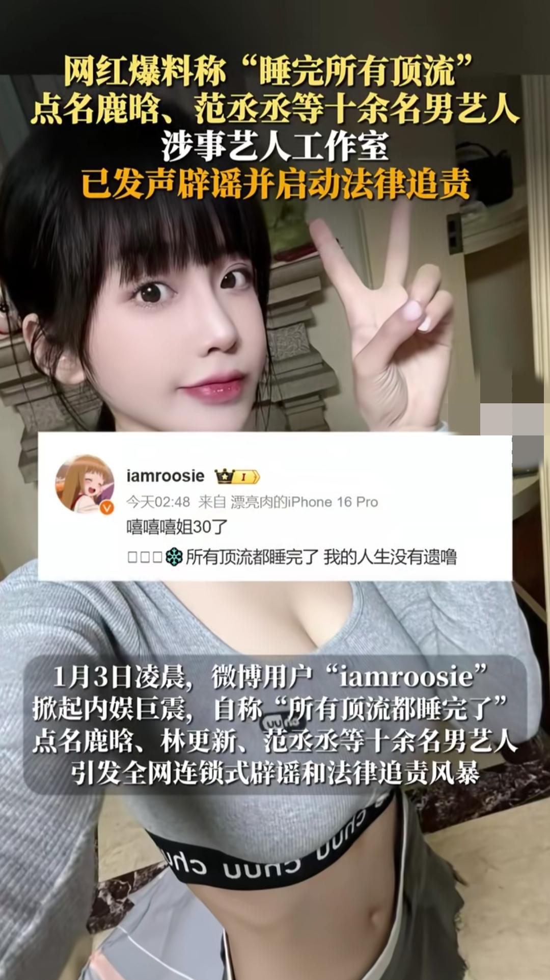 刷到司晓迪的“顶流爆料”时,我还以为是啥惊天大瓜——十多个顶流名字列得密密麻麻,连聊天记录、合照都摆出来了,乍一看好像真有那么回事。可越看越不对劲:聊天记录模糊到认不出名字,合照全是多人聚会的远景,连“亲密照”都透着AI合成的塑料感。 果不其然,没等网友反应过来,鹿晗、范丞丞等艺人的工作室就集体下场辟谣,统一说“没往来、没关系,已取证追责”。林更新团队甚至话里带话,暗示她可能状态不对。很快网友扒出,这不是她第一次碰瓷艺人,之前就靠类似操作博眼球。 其实大家都懂,她要的从来不是“真相”,是流量——把半个娱乐圈拉下水,哪怕最后被打脸,也赚足了关注度。可这种踩着别人声誉的“红”,终究是歪门邪道。网络不是法外之地,拿造谣当捷径,早晚要为自己的闹剧买单。