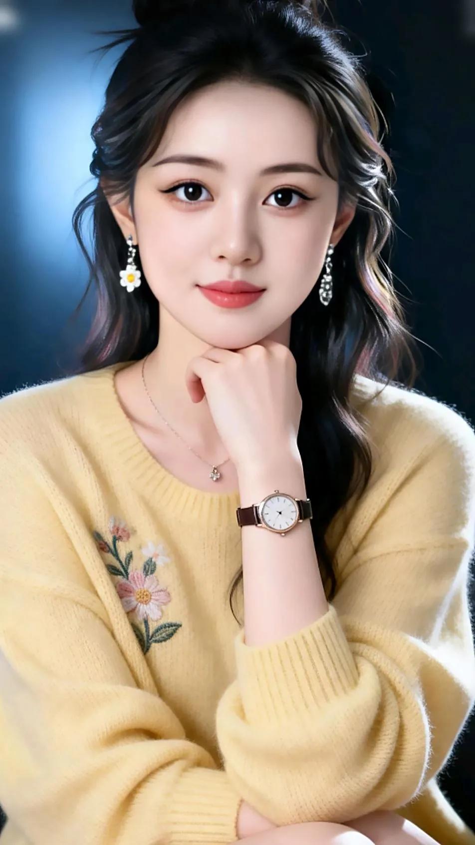 元气少女甜美演绎,粉色毛衣搭配精致发饰,温柔动人