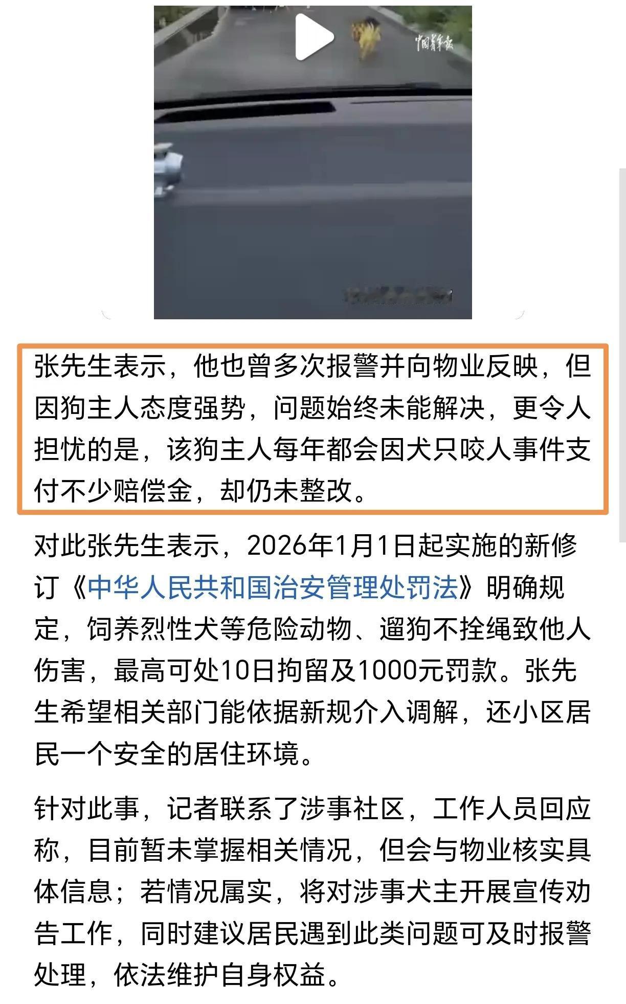 号称史上最严养犬令已经开始实行。 可实际执行情况和效果如何,还要看老百姓的反馈。 新闻报道,黑龙江大庆就有养狗人,喜欢带5-6只大型犬在小区内溜达,还全都不拴绳。即使每年都因犬只咬人赔付不少金额,也依然不整改,态度强势、我行我素。 附近居民深受其扰好几年,和物业、派出所反映了情况也无法解决问题。 面对这样的情况,就看养狗新规能否实施到位、让这类养狗人整改了。 如果还是和以前一样只是处罚养狗人点钱的话,那根本无法改变现状。法律法规能否执行到位、让法律长出牙齿、具有足够的威慑力,这才是老百姓最关心的问题。 如果在执行过程中打折扣、和稀泥、妥协让步,那法律法规就根本毫无威严,又如何让人信服遵守。 城市养狗禁令 城市养狗新规 禁养犬规定 禁养犬新规 城市养犬管理 禁烈性犬