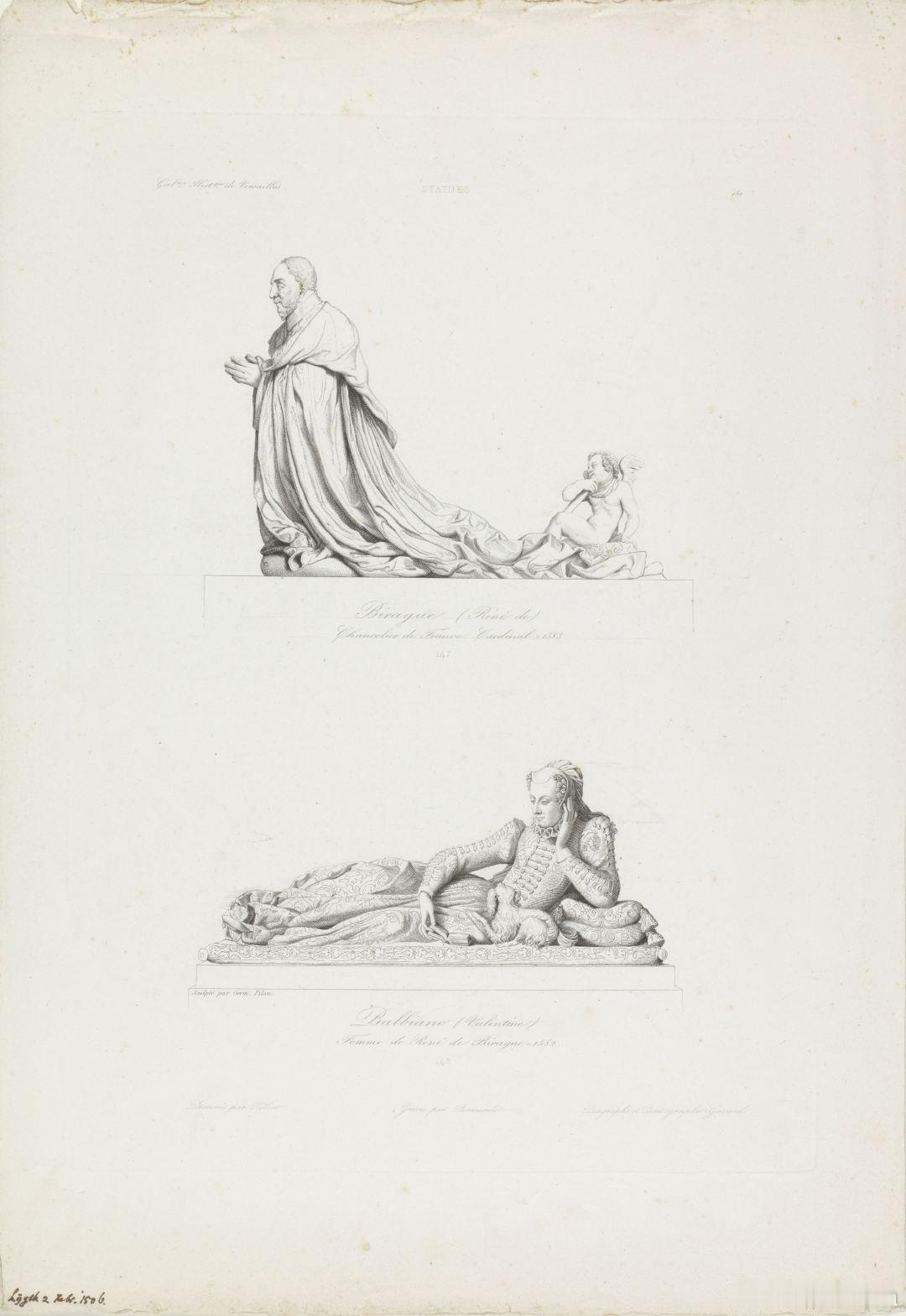 西洋历史文化鱼缸 历史人物 法国文艺复兴时代雕塑家Germain Pilon(约1525-1590)1580年为意大利血统的法国政治家、红衣主教René de Birague(1506-1583)的妻子制作的大理石墓雕。René de Birague出生于意大利米兰,其家族在弗朗索瓦一世时代便投靠了法国,他本人担任过里昂的长官、大法官和红衣主教,在法国宗教战争中,René de Birague属于主张对新教残酷镇压的天主教保守派,是圣巴多罗买大屠杀幕后策划之一。墓雕(Tomb effigy)在西方文明源远流长,可上溯至古埃及和伊特鲁里亚时期,在中世纪至文艺复兴的欧洲贵族中也非常流行。