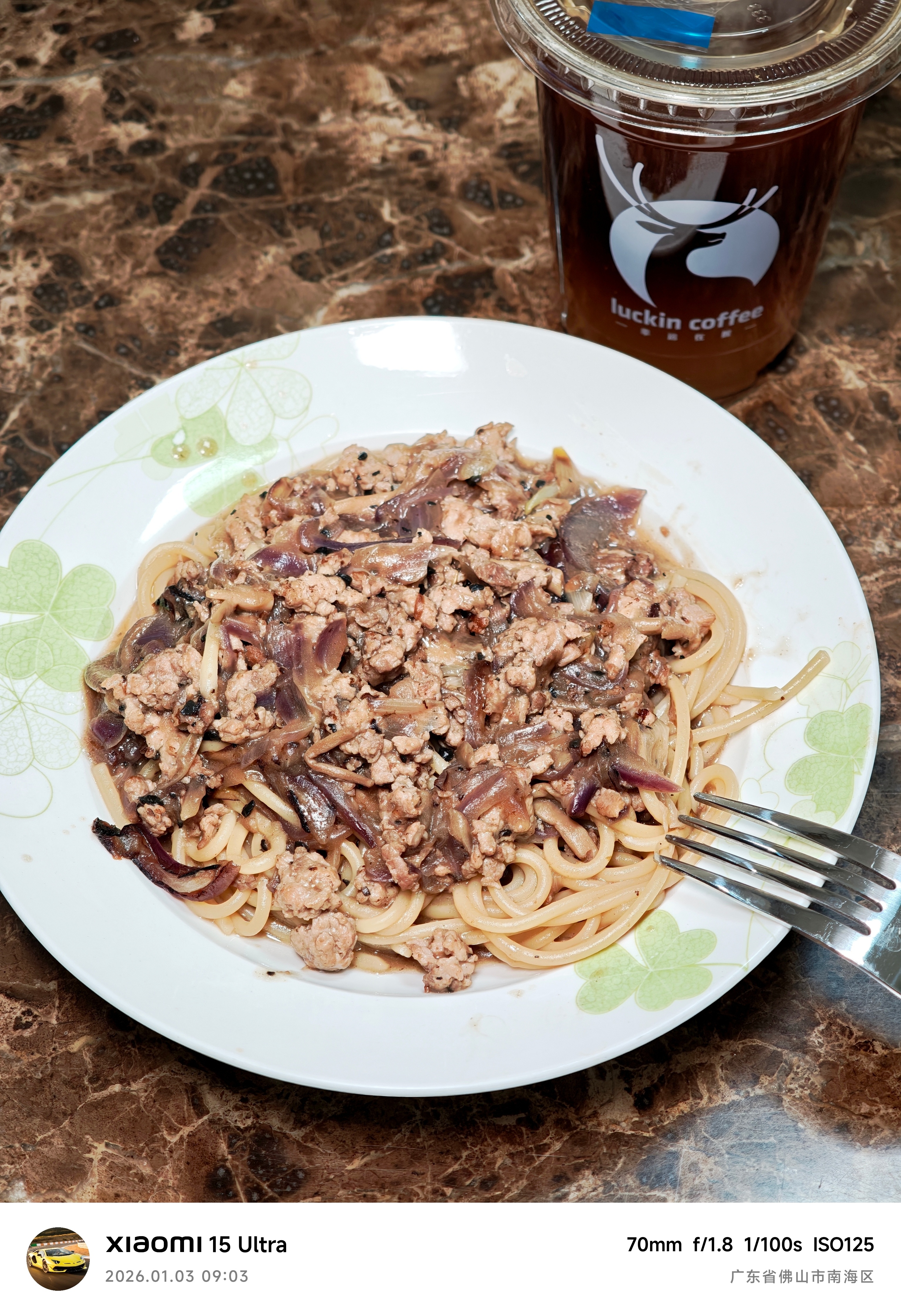 朋友们早啊! 假期来到最后一天周末照常我爸做🍝今早是黑松露奶油肉酱面再配上昨晚买的 其实今天还是我农历生日,也算是西式长寿面了