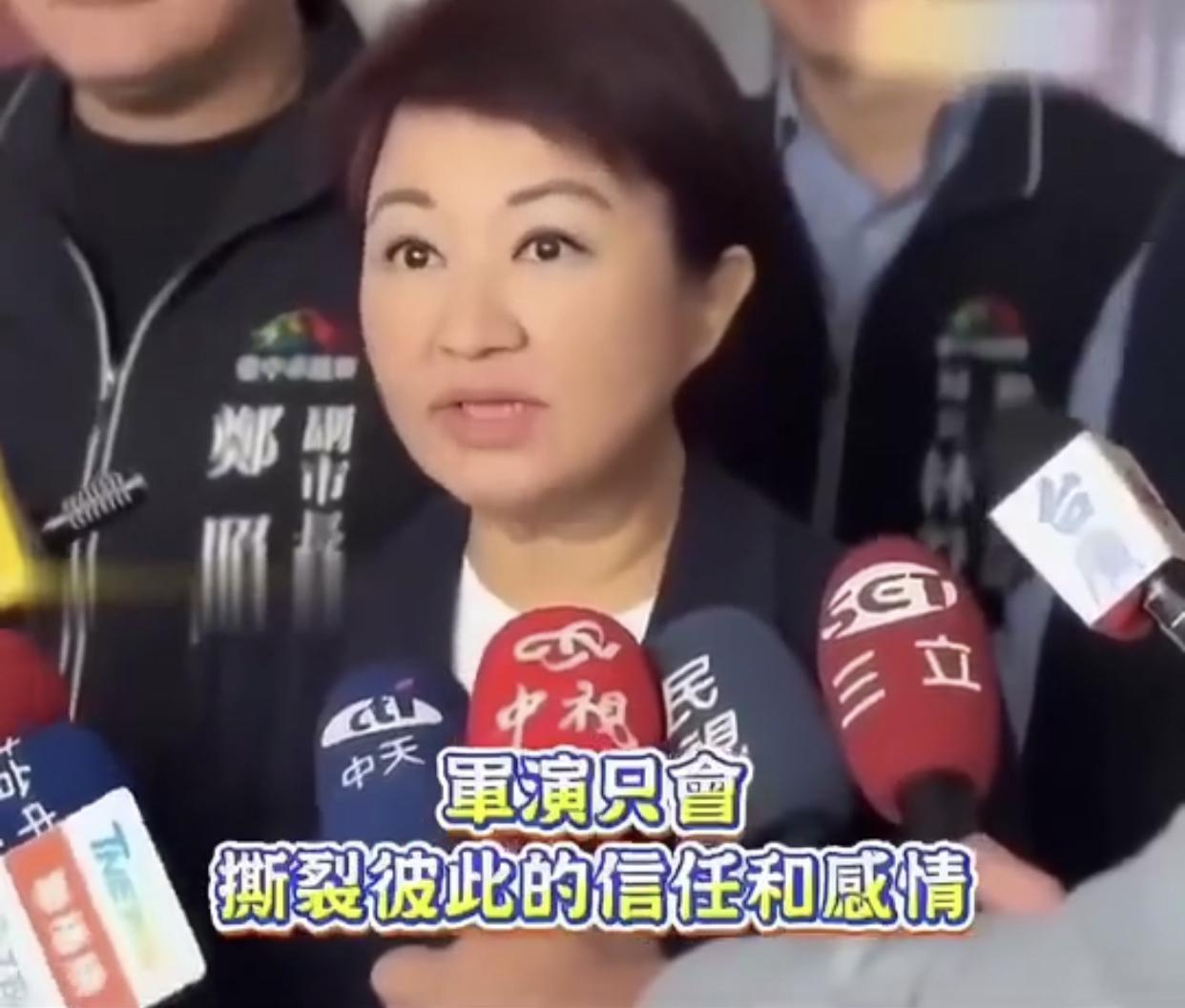 台湾卢秀燕称:“战争不能带来和平,大陆围台军演只会撕裂彼此的信任和感情,任何危害2300万人生命财产的行为,我们都强烈的反对、严厉的谴责。”