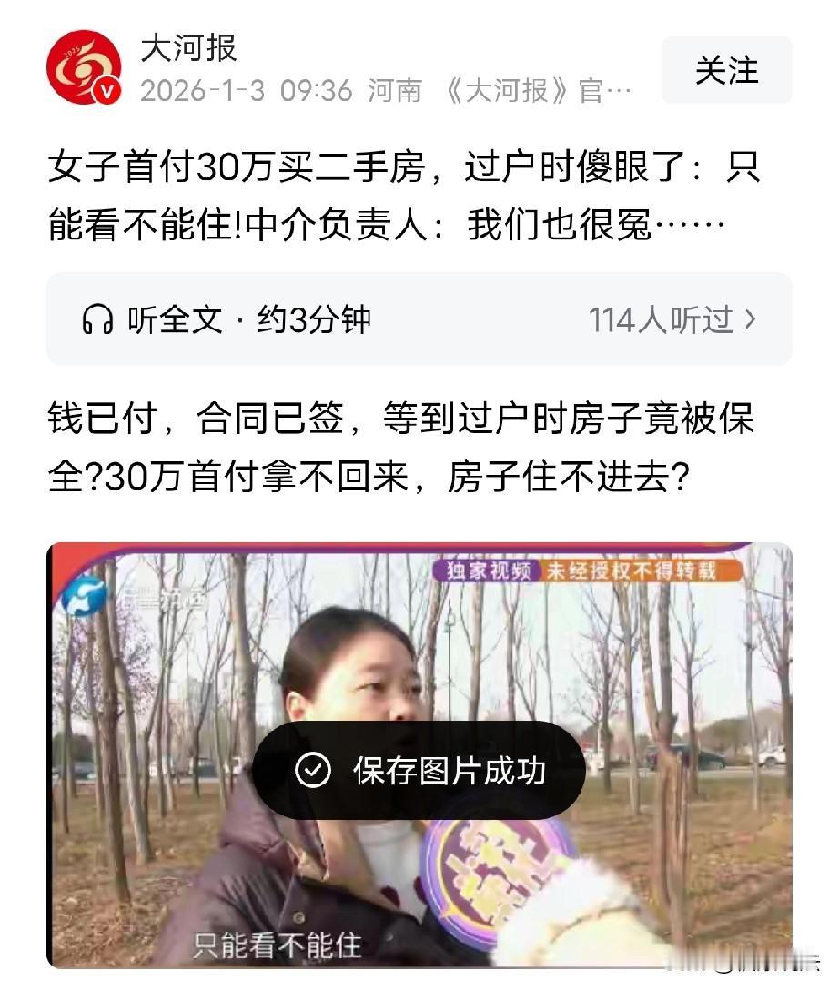 “天塌了!”河南商丘,女子通过中介首付30万买了一套二手房,过户时,却被告知房子已被法院保全,无法办理过户,女子欲哭无泪,这30万首付已掏空了家底,房子不能过户,那钱能要回来吗?中介无奈表示,女房主一开始说她单身,房子是单独所有,事发时,才知女房主和同居男友签过一份协议,该房男方占70%产权,女方占30%,卖房时二人闹矛盾,男方申请了房产保全,可如今联系不上房主了… 焦女士心急如焚,买房30万首付交了,可没想到,过户时出事了,如今这钱能不能要回来都成了难题? 事情是这样的,焦女士家孩子在郑州上学,为了离孩子近一点,可以随时照顾,她通过中介看了一处学校附近的二手房。 2025年11月,中介给焦女士推荐了一套房子,是三室一厅,价格97万。 焦女士还真就相中了这套房,几乎拿出家里全部积蓄,支付了30万元首付款。 买下这套二手房后,焦女士就等着过户了,因为当时她也信得过中介,中介说原房主说她是单身,另外,房产证上面也写了是女房主单独所有。 而且,焦女士在办理买房的相关手续时都挺顺利的,办理贷款手续后,她盼着早点可以住进新家,可她万万没想到,最终卡在了过户这一关。 2025年12月份,焦女士准备办理过户手续,她和中介、原房主一起去的,结果,工作人员告诉她一个令她难以置信的消息——这套房子已经被法院保全,过户没法办理了。 那么,房子“保全”是什么意思呢? 通俗来说,就是法院把房子暂时“锁”起来,不让卖也不让过户。一般是房子有纠纷,怕一方偷偷把房子处理了,所以,暂时先查封着,等纠纷解决了再说。 焦女士都傻了,简直欲哭无泪,房子怎么就有问题了?再一想房子不能过户,交的那30万首付万一拿不回来可怎么办?这可是家里全部积蓄了。 等缓过神儿来,焦女士提出疑问,买房前没有任何人告诉自己房子有问题啊。 中介的负责人和焦女士解释说,这事我们也郁闷啊,女房主在签合同前说他们自己是单身,房产证上面也写了女房主单独所有。 中介也是在焦女士过户时才知道,原女房主和同居男友在之前对该房产签过一份协议,女方占30%产权,男方占70%。 不过,原女房主卖房的时候和男友有了矛盾,而且重要的是,男方也出了钱买房,所以,他向法院申请了房产保全。 问题来了,房产证上只有女房主一个人的名字,后面说男女双方约定的比例协议有法律效力吗?房产证上都没那个男的名字,男的怎么申请法院保全房子? 此事中,房产证上仅登记女方一人名字,从法律外观上看,房屋所有权归女方单独所有。 如果,男女双方在同居期间签订了书面协议,明确约定男方占70%产权、女方占30%,且该协议不违反法律(如未涉及他人权益、未以合法形式掩盖非法目的),则协议在双方之间具有法律效力。 不过,该协议仅对协议双方有约束力,不能直接对抗外部第三人,也就是对买房的焦女士无效。 另外,男方虽未登记为房产共有人,但他如果能拿出出资证明、共同购买协议等证明,可向法院申请保全。 焦女士面对这突如其来的变化,也是无可奈何。 中介对于原房主突如其来的变故也束手无策,本来当时二人同意卖房子,谁想到中途二人出现问题,更让人悬心的是给原房主打电话,也没人接。 你说这事儿多让人闹心,焦女士一开始也是信着中介了,可她和中介都不知道,这个原女房主和男友签了协议对房产进行了产权划分。 所以,当原女房主和男友出现矛盾,一个要卖房子,一个不要卖,坑惨了付了30万首付的焦女士。 那么,焦虑可以要求女房主退还30万首付款吗? 焦女士购房的核心目的是取得房屋所有权并入住。但因房屋被法院保全,无法过户,导致合同目的彻底落空。 《民法典》577条规定:当事人一方不履行合同义务或者履行合同义务不符合约定的,应当承担继续履行、采取补救措施或者赔偿损失等违约责任。 焦女士已支付的首付款30万元属于“已履行部分”,卖方需全额返还。若卖方拒绝返还,焦女士可向法院申请强制执行。 即使女房主同意卖房,但因其未妥善处理与男方的产权纠纷(如未取得男方书面同意出售证明),导致房屋被保全,仍构成违约。 焦女士无需承担卖方与第三方的内部矛盾后果。 此事中,中介有责任吗? 中介可能需承担部分责任,具体取决于其是否尽到审慎核查义务。 《民法典》第962条规定:中介人应当就有关订立合同的事项向委托人如实报告。 如果,中介未核实房屋真实产权状态,比如未发现男女双方的内部产权协议,导致焦女士买房陷入风险,可能被认定为存在过失,需赔偿部分损失。 如果,焦女士一开始如果通过不动产登记中心查询房屋具体情况,签合同时要求房屋共有人到场签字出售,这样可能就避免了这种情况了。 来源:大河报,小莉帮忙