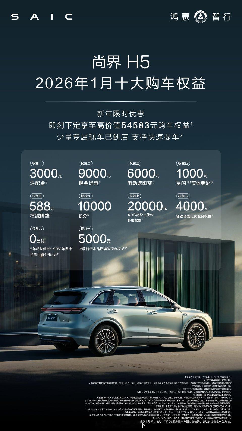 尚界H5的新年购车权益,不送后排Maglink平板套装了,现在是优惠9000