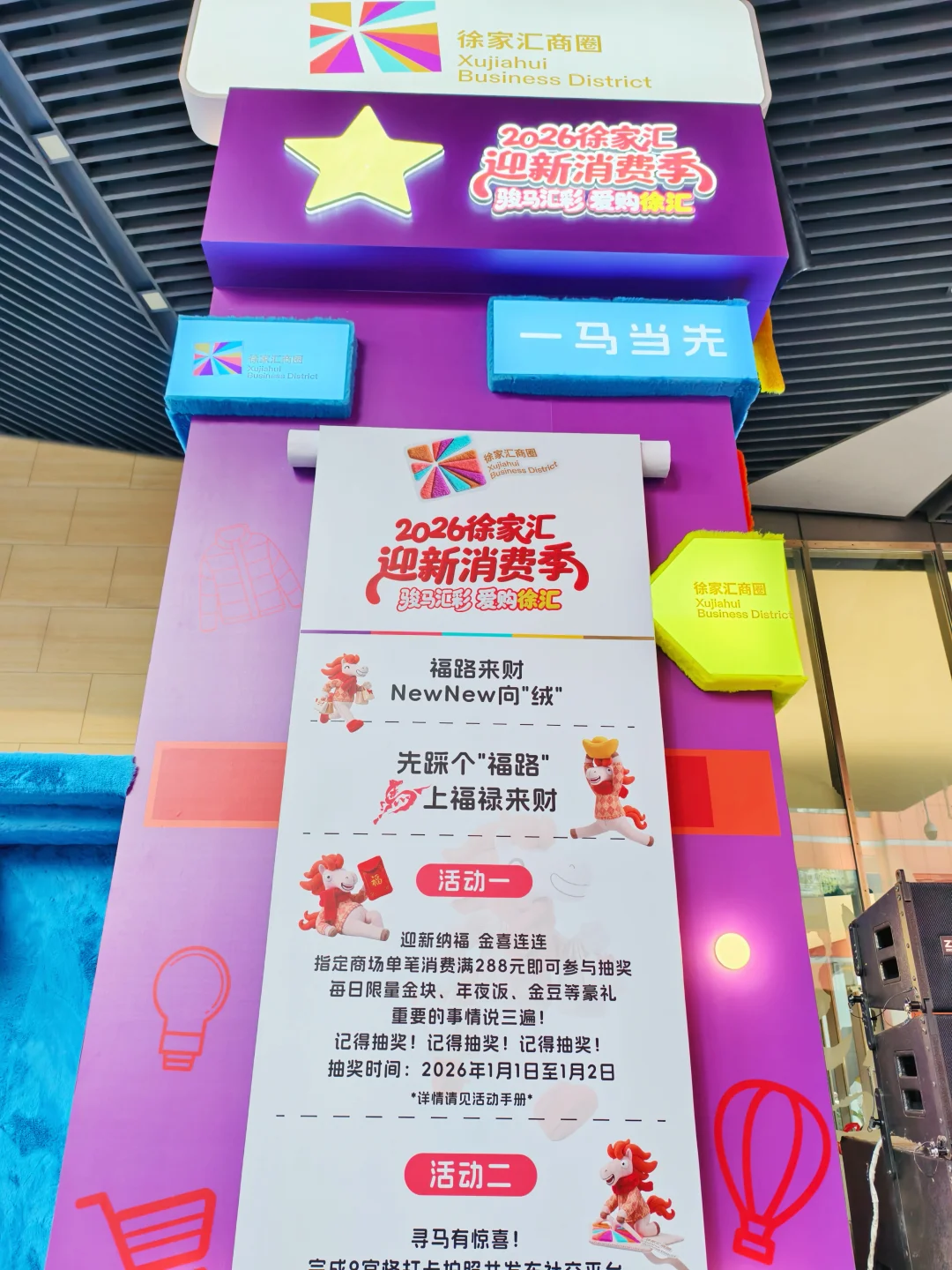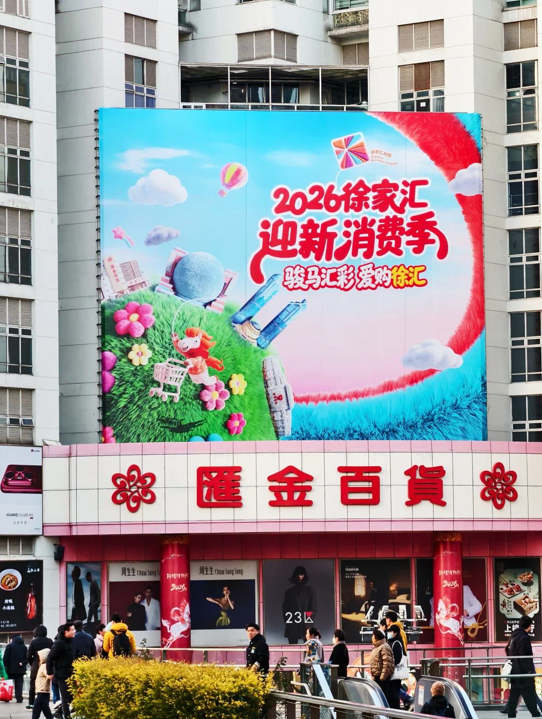 家人们!2026徐家汇迎新消费季太赞啦🎇 去港汇、美罗城等商场消费满288 就能抽5g金块、金豆、千元年夜饭🍲 百分百中奖!截止到1月2号哦~ 新年开运就靠这波金喜~ 美罗城旁的毛绒治愈世界太好拍📸 巨型毛绒装置+非遗剪纸+手作摊位 “福路来财”地贴踩起来超有年味 新的一年,徐家汇一整个“绒”化了! 还有街头艺术快闪、上剧场票根兑好礼🎁 汇金百货的敦煌风新春美陈氛围感拉满 2026.1.8起还有口袋毛绒集市,蹲住不亏!