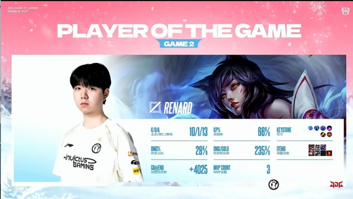 要不Rookie也休息?iG小中单RENARD狐狸10-1-13 斩获第二局MVP
