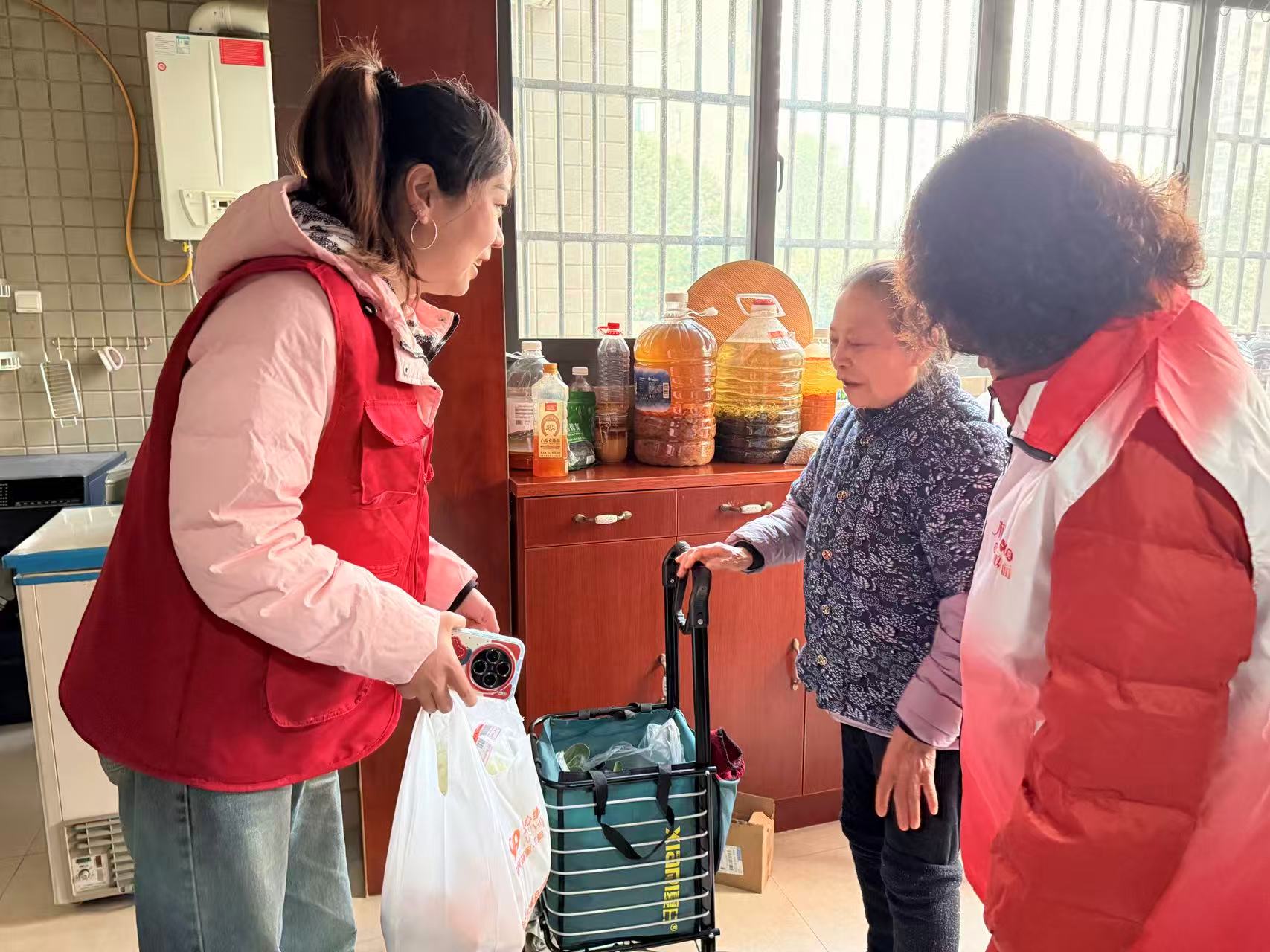 不仅能现场选购,还可以送菜上门。元旦假期,滨湖世纪社区“孝满振杰为老服务团队”志愿者则将新鲜、平价、优质的“惠民菜”,直接送到社区内高龄独居老人的家中。希望通过这份小小的关怀,能够切实减轻老人们的日常采买负担。