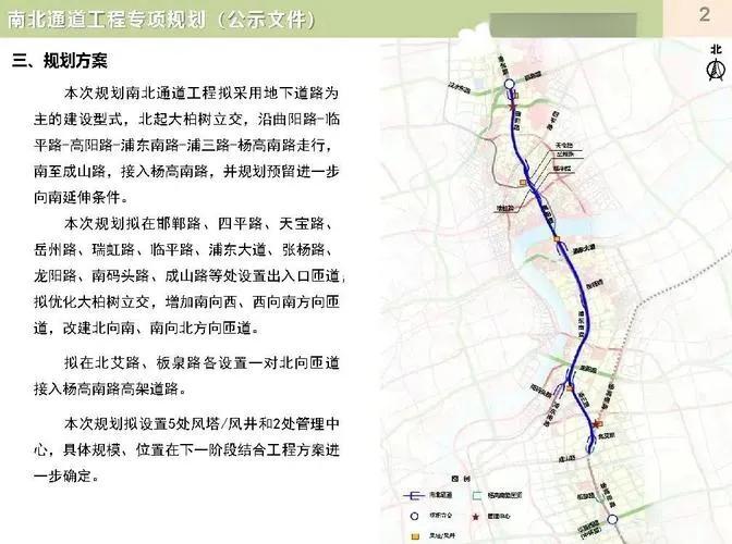 上海盼了20多年的南北通道,终于在2026年1月2日正式开工了!这可是投资超百亿的超级工程,对上海中心城区交通来说意义重大。 这条通道全长14.55公里,和南北高架平行,就在它东边,北从中环大柏树立交出发,沿着曲阳路、临平路这些路走,到中山北二路附近就转入地下,穿过黄浦江后进入浦东,再沿浦东南路、浦三路往南,最后到杨高南路成山路北边。这次先开工的是浦西段和越江段,总长6.35公里,主要是地下隧道,还是单管双层的设计,双向4车道加两侧集散车道,专门走小客车,设计时速60公里。 建成后好处太多了!它是上海中心城区“井字形”路网的最后一笔,能和北横通道、外滩通道凑成完整路网,还能分流南北高架的车流,以后从江湾镇到陆家嘴可能20分钟就到了。而且它能串联起北外滩、陆家嘴、世博这些核心区域,还是世界最长的中心城区地下连续流道路。 不过工程难度不小,地下挖得比北横通道还深10米左右,要穿黄浦江和多条地铁线,周边环境复杂。好在施工方会用数字化、绿色建造技术,还会采取措施减少对交通和居民的影响。 目前预计建设工期5年,最快2030年通车,浦东段后续会启动。 上海路线规划 上海南北隧道