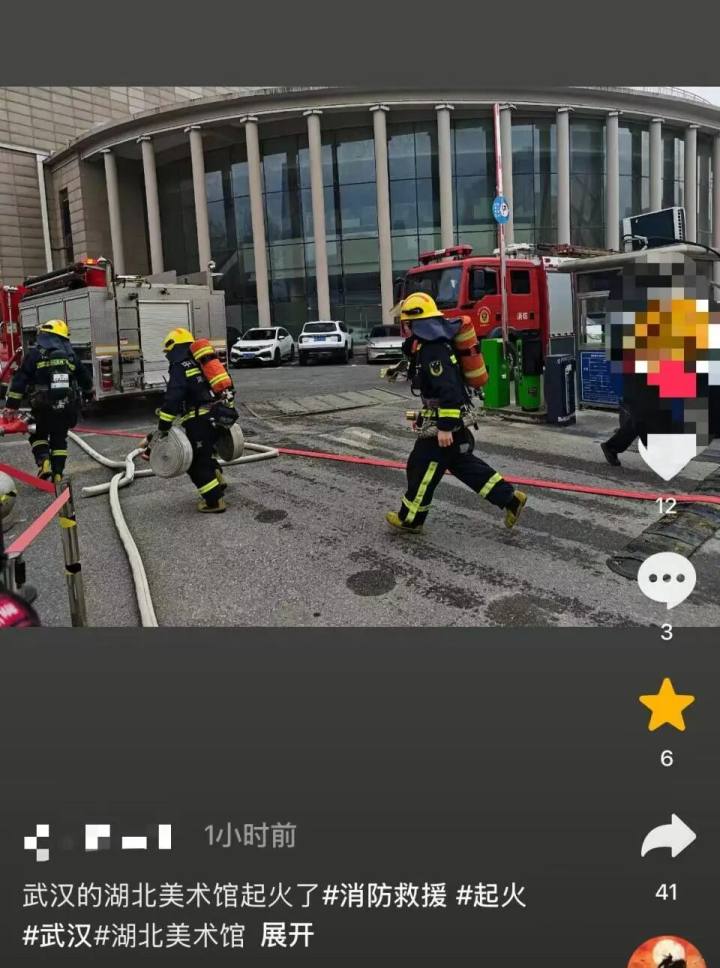 2026年1月3日下午14时25分许,湖北省美术馆办公区域发生火灾。接警后应急、消防、公安等部门立即赶赴现场开展灭火救援。明火于15时18分扑灭,过火面积50平方米。未造成人员伤亡,馆藏物品未受影响,起火原因正在调查中。